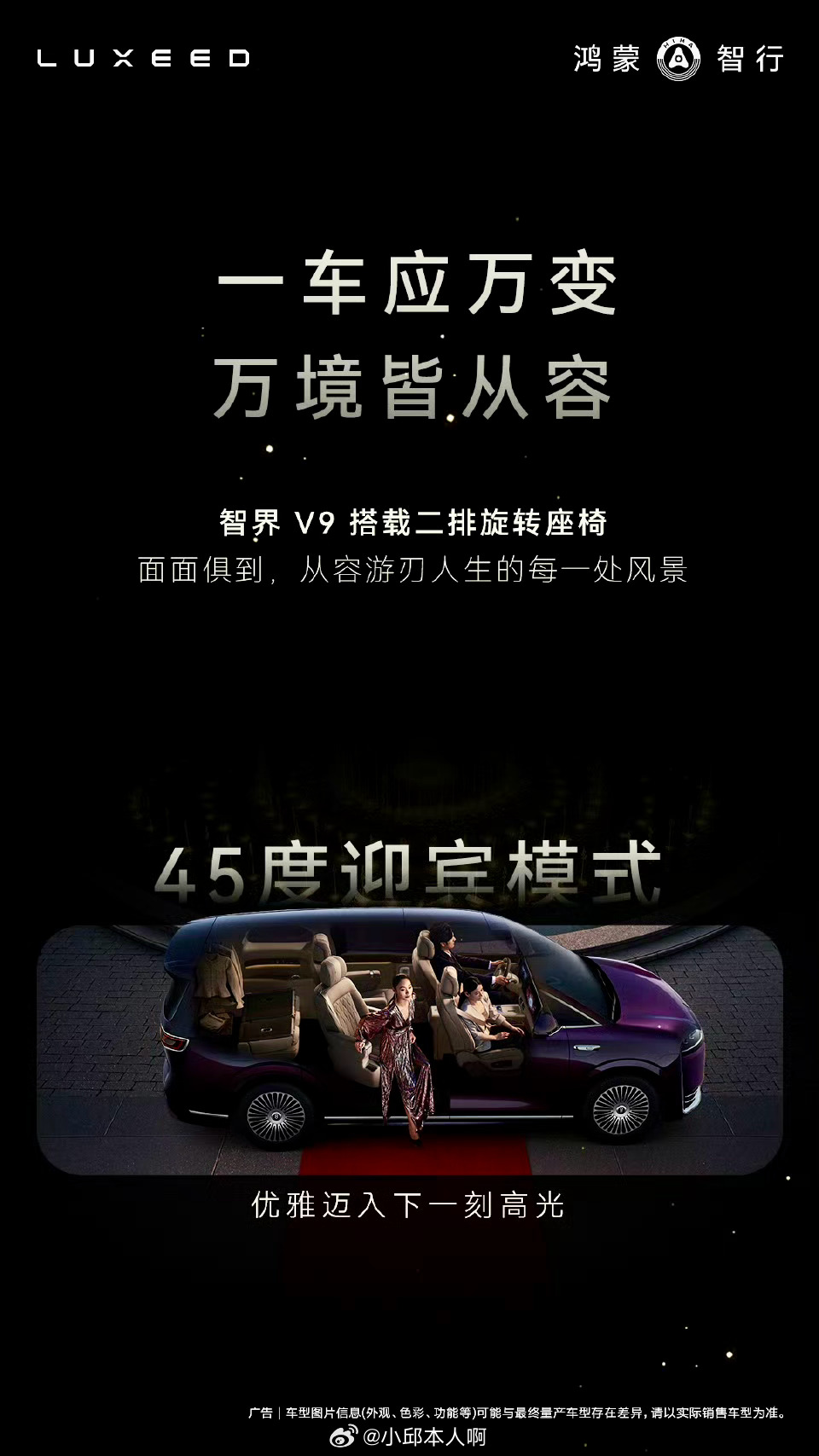 全家出行,还是商务接待,车里都像一个移动的舒适客厅,整体体验很高级,日常用起来也特别体面。智界V9智驾数码团大v聊车