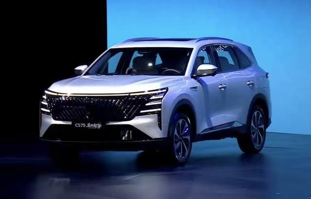 首搭蓝鲸超擎混动系统,长安CS75 PLUS HEV首发 3月30日,长安汽车发布了蓝鲸超擎混动技术,首款搭载该系统的车型CS75 PLUS HEV也同步亮相。新车外观细节与在售燃油版有所区别,动力采用1.5T油电混动系统。更多信息将在4月24日开幕的2026北京车展公布。目前在售的第四代CS75 PLUS燃油版指导价为10.89万-13.99万元。 从实车和申报图看,CS75 PLUS HEV的前格栅采用斜向镀铬饰条,形成V字形效果,两侧大灯与中央灯带组成贯穿式造型。前包围集成梯形散热口,带主动格栅功能。侧面和尾部与燃油版基本一致,但门把手换成了传统机械式,这一点和不少新车型反着来——现在很多车都在用隐藏式,它反而回归传统。尾门右下角有“HEV”标识。 车身尺寸与燃油版相同,长宽高4770/1910/1698(1705)毫米,轴距2800毫米。轮毂提供18、19、20英寸多种样式可选。 内饰变化不大,新增“暮雪青山”配色。预计沿用10.25英寸全液晶仪表、14.6英寸中控屏、12.3英寸副驾娱乐屏的三联屏,配双色三辐方向盘和电子怀挡。中岛区域有木纹饰板、手机无线充电板和双杯架。 这是核心变化。CS75 PLUS HEV首搭蓝鲸超擎混动,由1.5T发动机和电机组成油电混动系统,发动机最大功率110千瓦,配三元锂电池,最高车速185公里/小时,工信部申报综合油耗4.69升/100公里。 官方称,蓝鲸超擎混动采用500bar超高压直喷技术,混动发动机热效率接近45%。搭载该系统的轿车城区油耗最低2.98升/100公里,SUV城区油耗最低3.98升/100公里。 除了CS75 PLUS HEV,长安CS55 PLUS HEV、UNI-V HEV、逸动HEV等车型也已申报,预计上半年陆续推出。长安计划推动全系燃油车搭载超擎混动技术,未来还将推出插混和增程版本。 CS75 PLUS HEV是长安燃油车HEV化的首款车型。4.69升的申报油耗,比燃油版省不少。机械门把手的回归,算是一个务实的改动。北京车展会有更多信息公布。