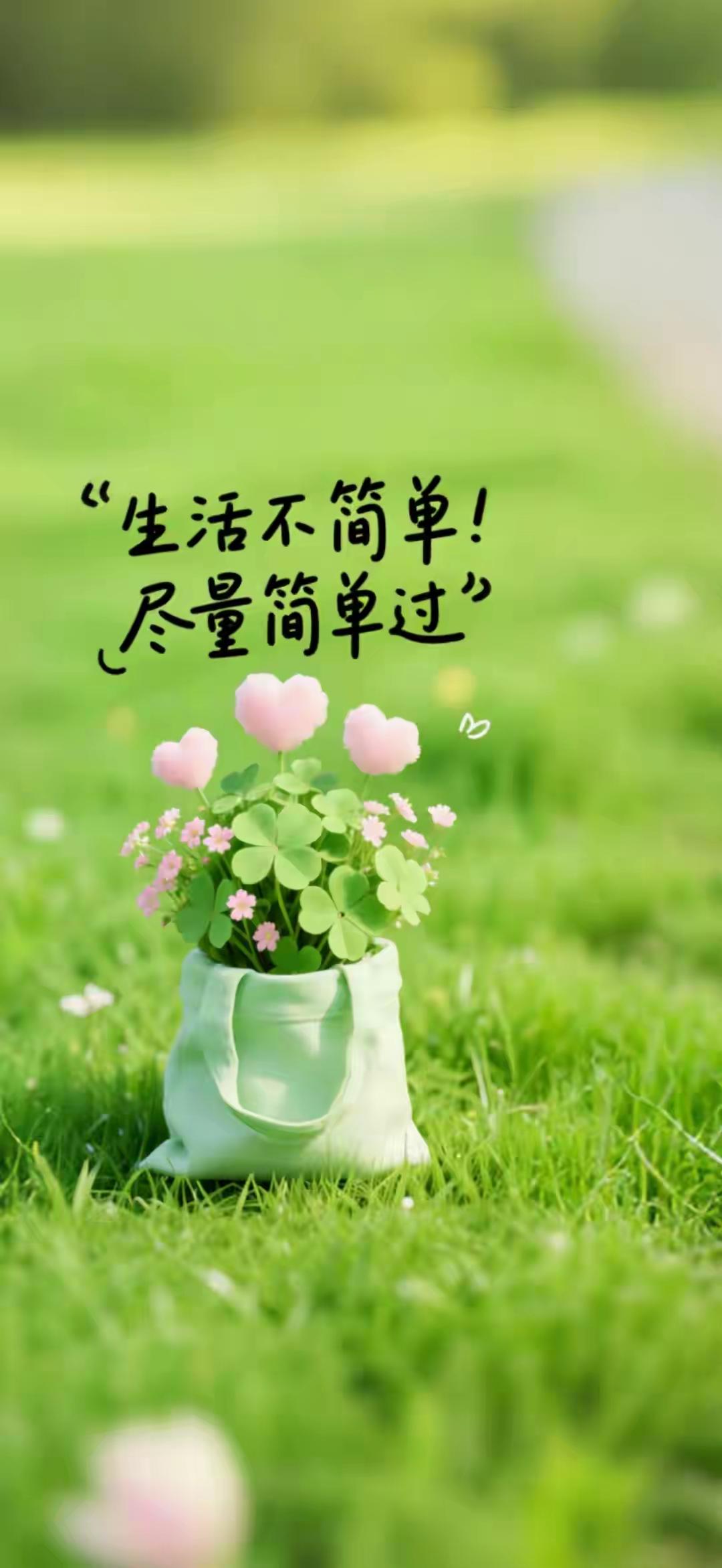 手机壁纸~生活本就复杂,不如试着简单过。把烦恼丢在风里,携一份幸运与温柔,在绿意