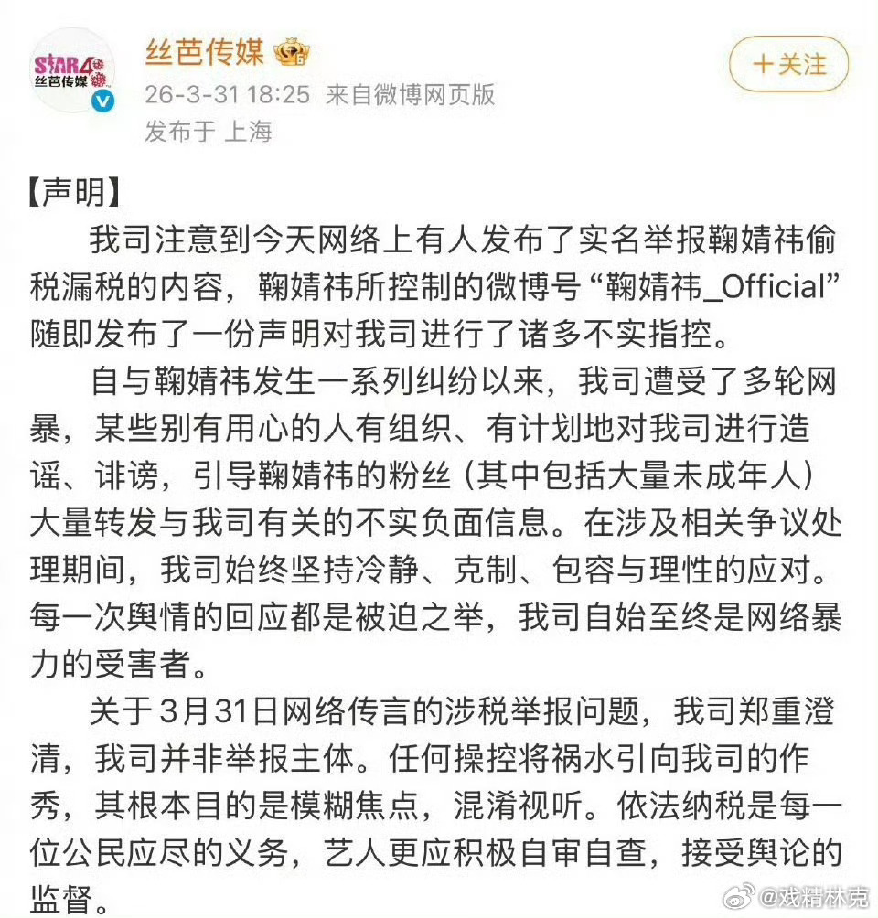 丝芭三问鞠婧祎丝芭否认举报鞠婧祎,并三问鞠婧祎鞠婧祎工作室声明