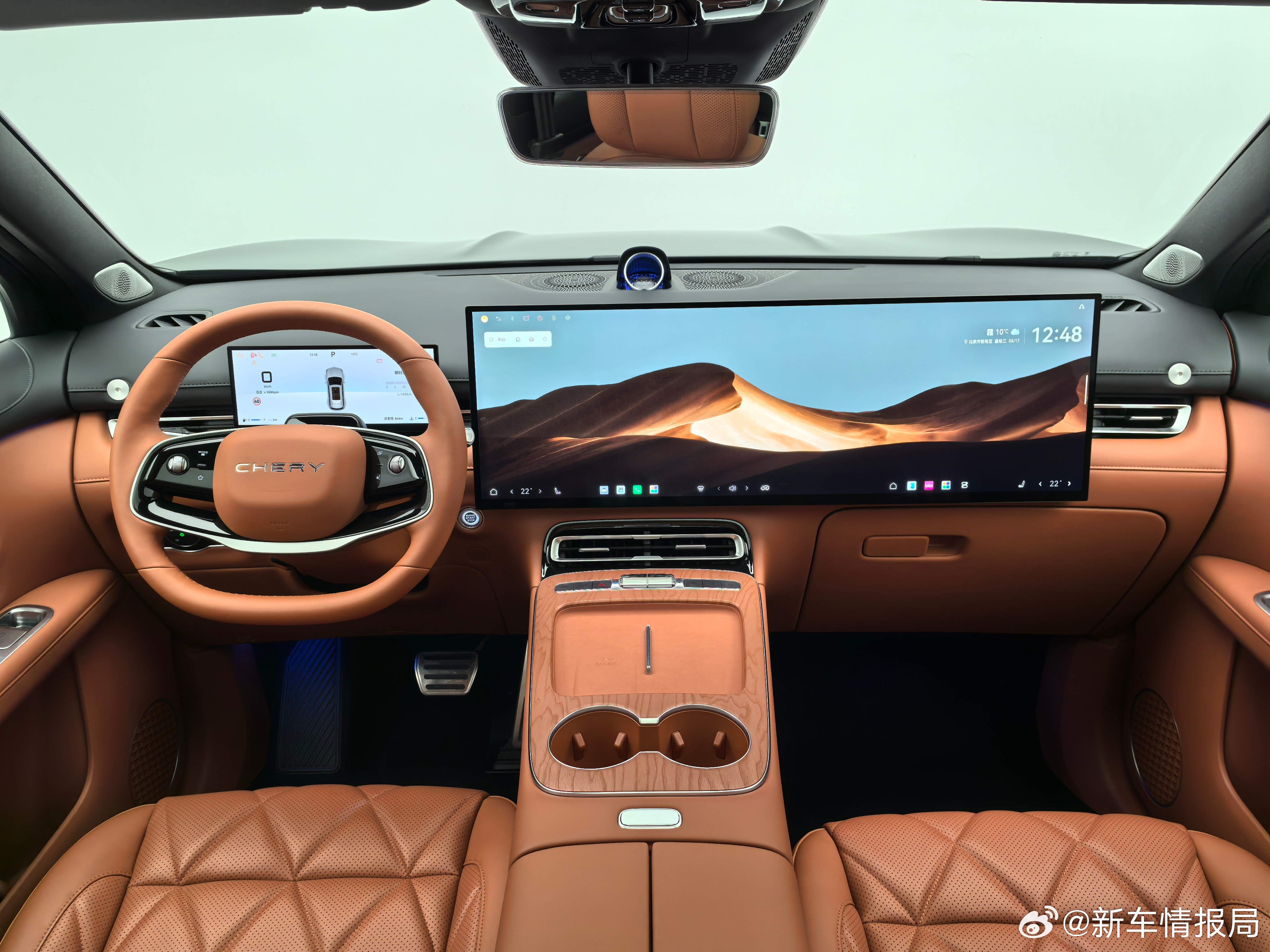7. 【人性化配置也很棒】新车将会使用两辐式方向盘、怀挡的换挡方式、双层中央通道布局,同时还有手机50W的无线充电面板,并且在仪表台两侧配备了螺纹接口,拓展功能得到进一步升级。