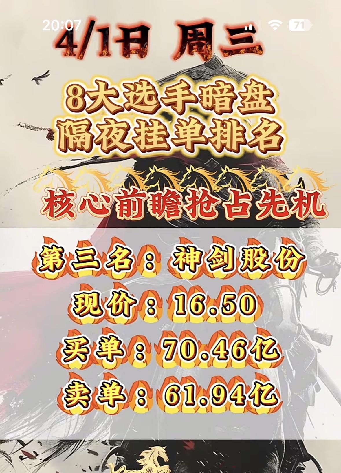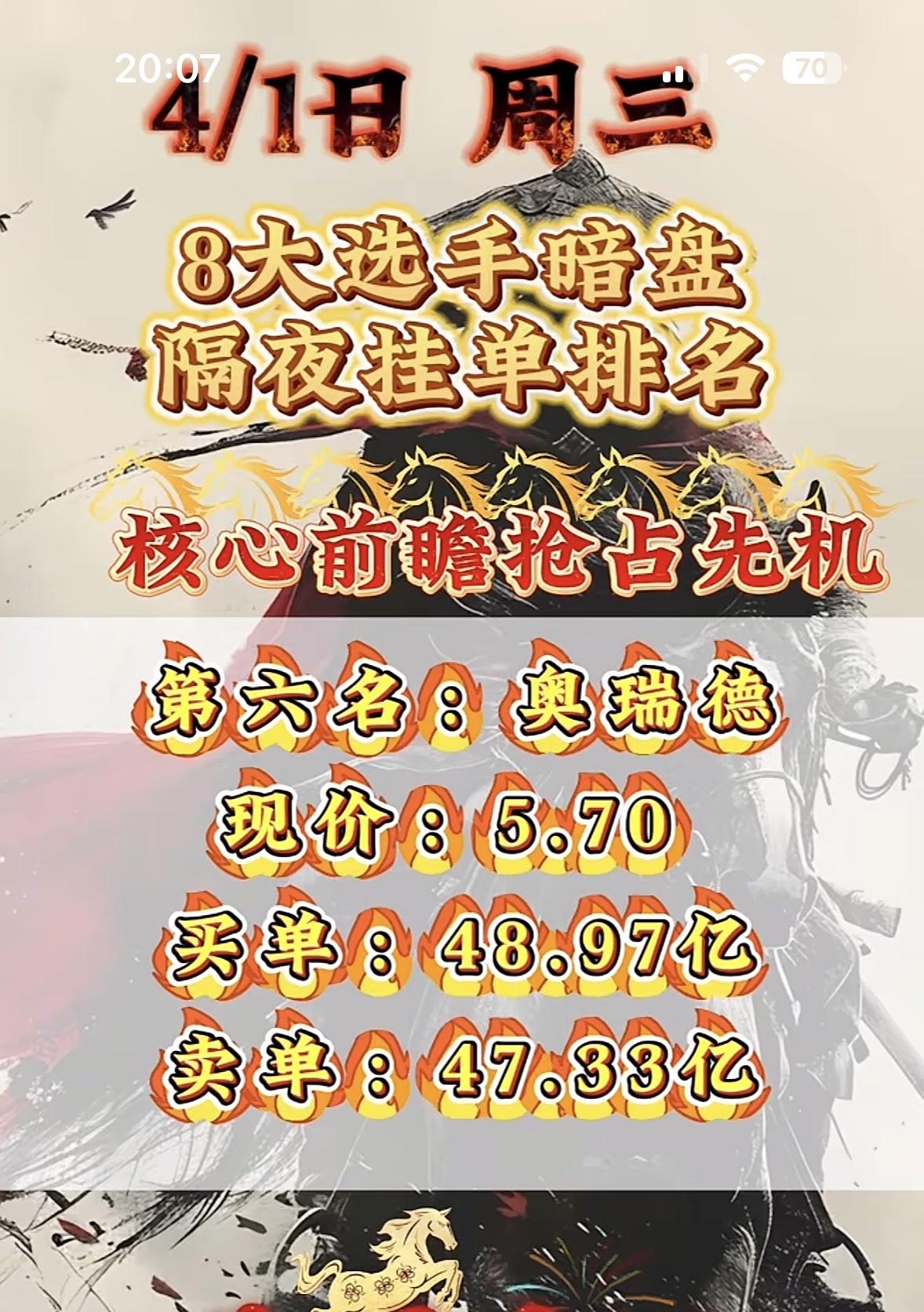 4月1日周三暗盘隔夜挂单排行榜出炉 金风科技暗盘排名第七,现价26.30,确实