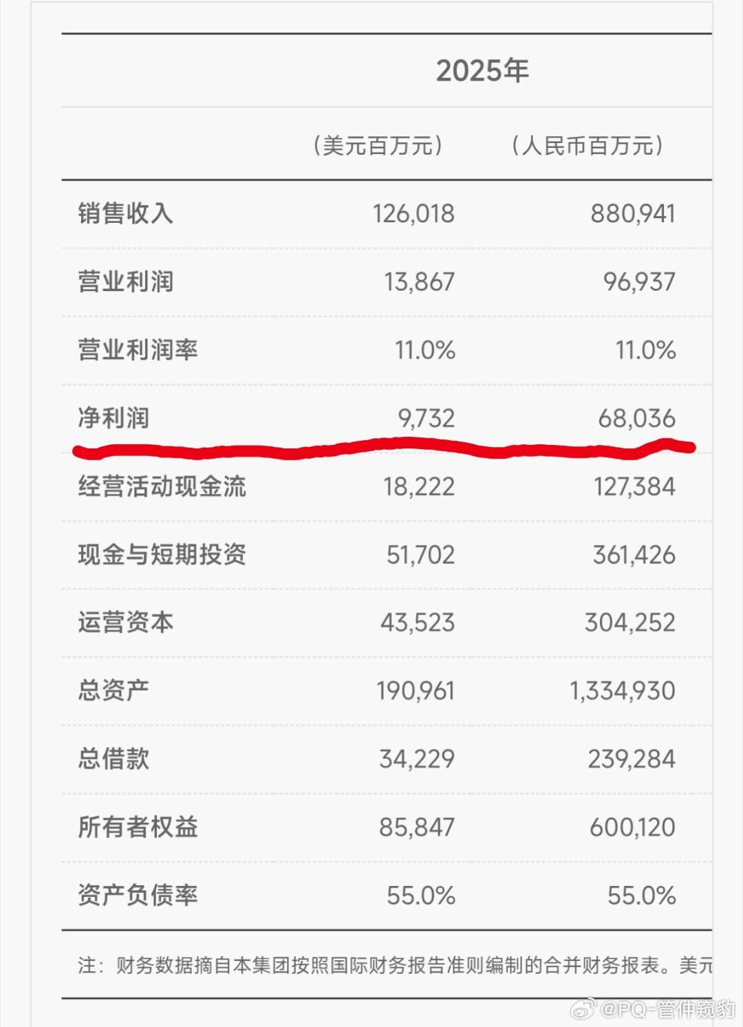 净利润680亿营收8809亿研发投入1923亿,营收占比21.8%👍🏻华为2025年净利润680亿