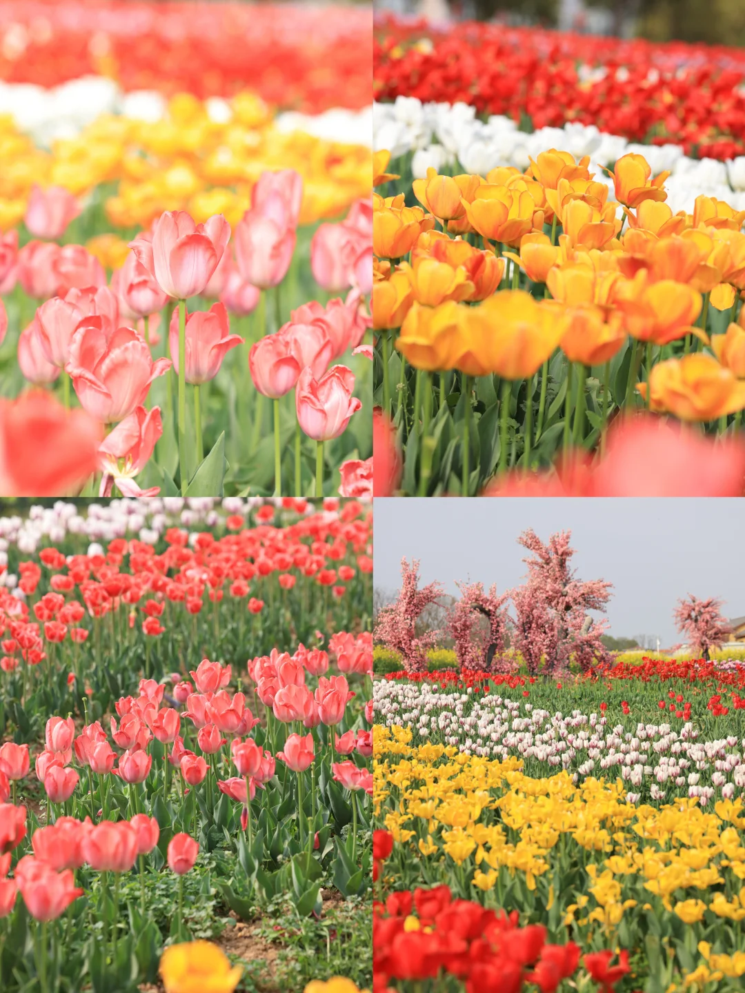 郁金香正值盛放期!粉色、橘色、红色交织成彩虹花带