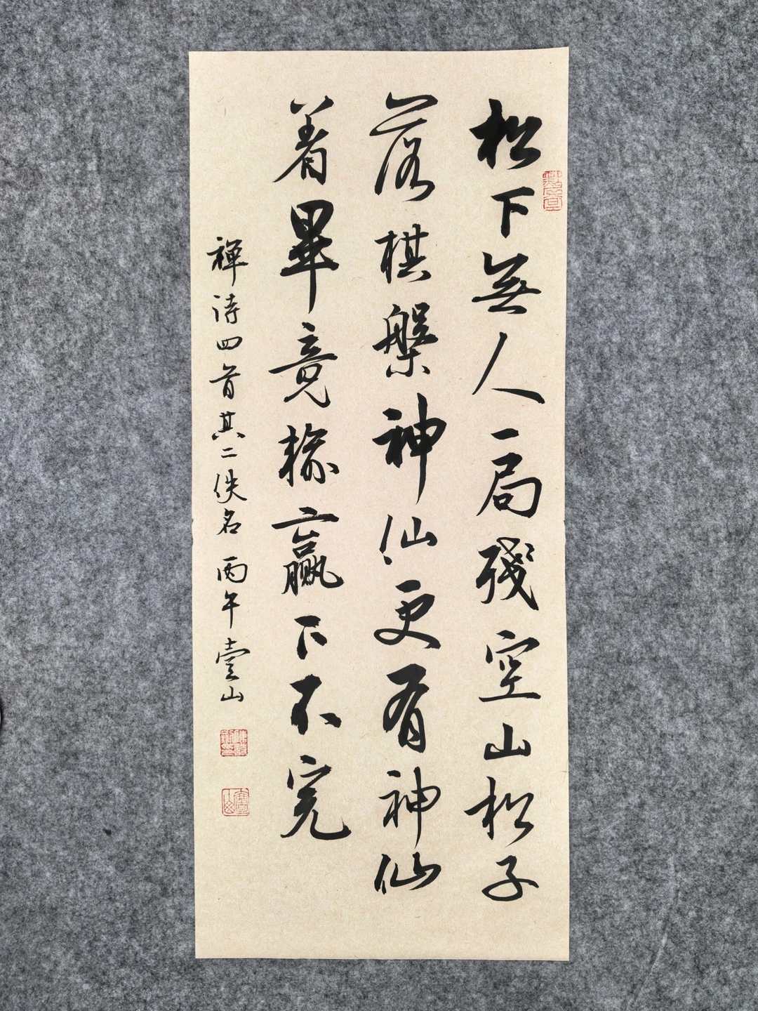 松下无人一局残,空山松子落棋盘。