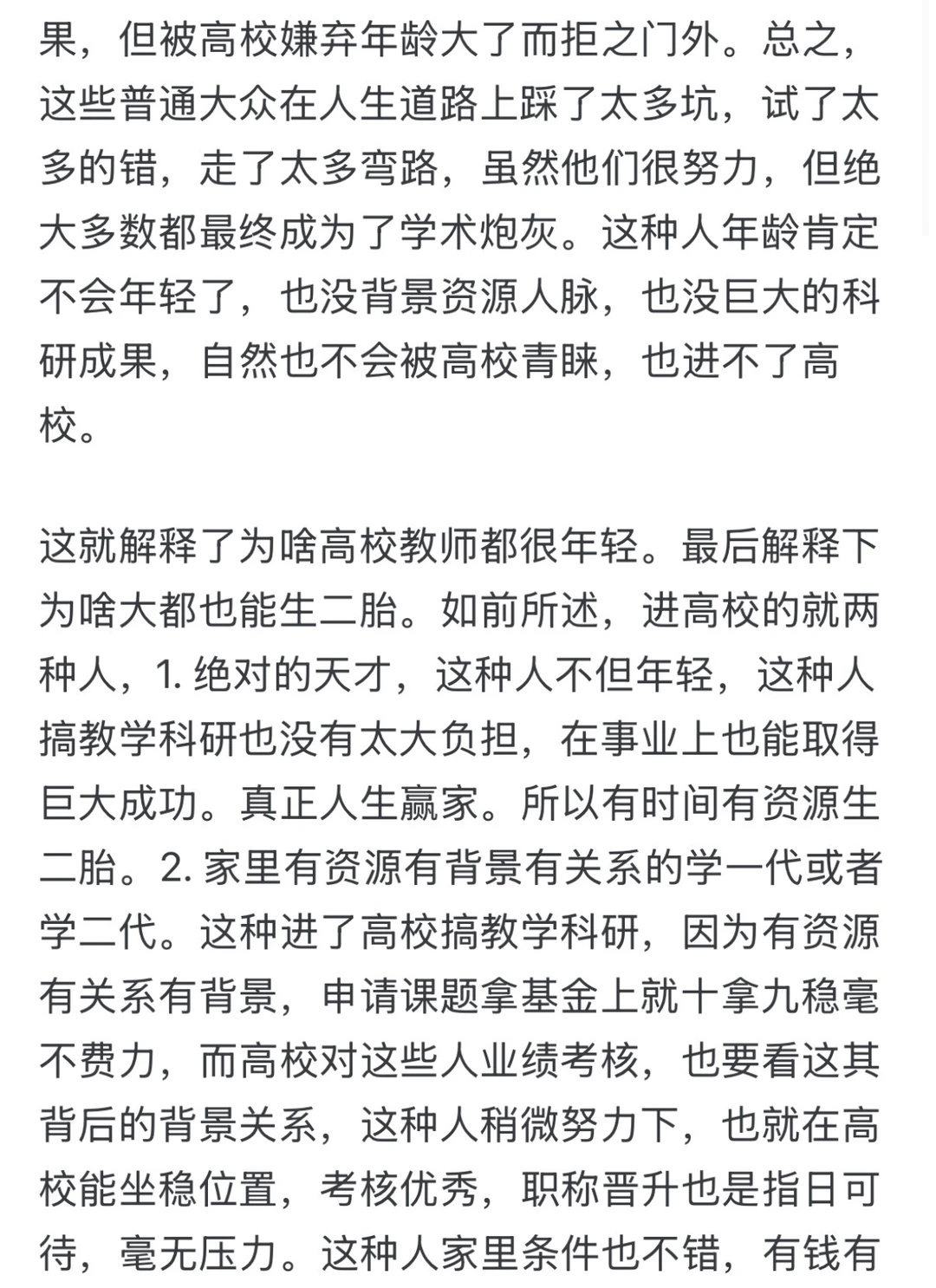 这种人虽然不是天纵英才的学霸,但人生道路上一路有家里资源背景以及人生道路设计上的大力扶持,所以也不会走啥弯路。最后就业上,还可以靠背景关系,进入高校,无论是教学科研从讲师做起,还是直接做行政都能得心应手,左右逢源。比如高校教授老师的孩子,一般能走这条路。这些人肯定也很年轻,因为人生没啥弯路。