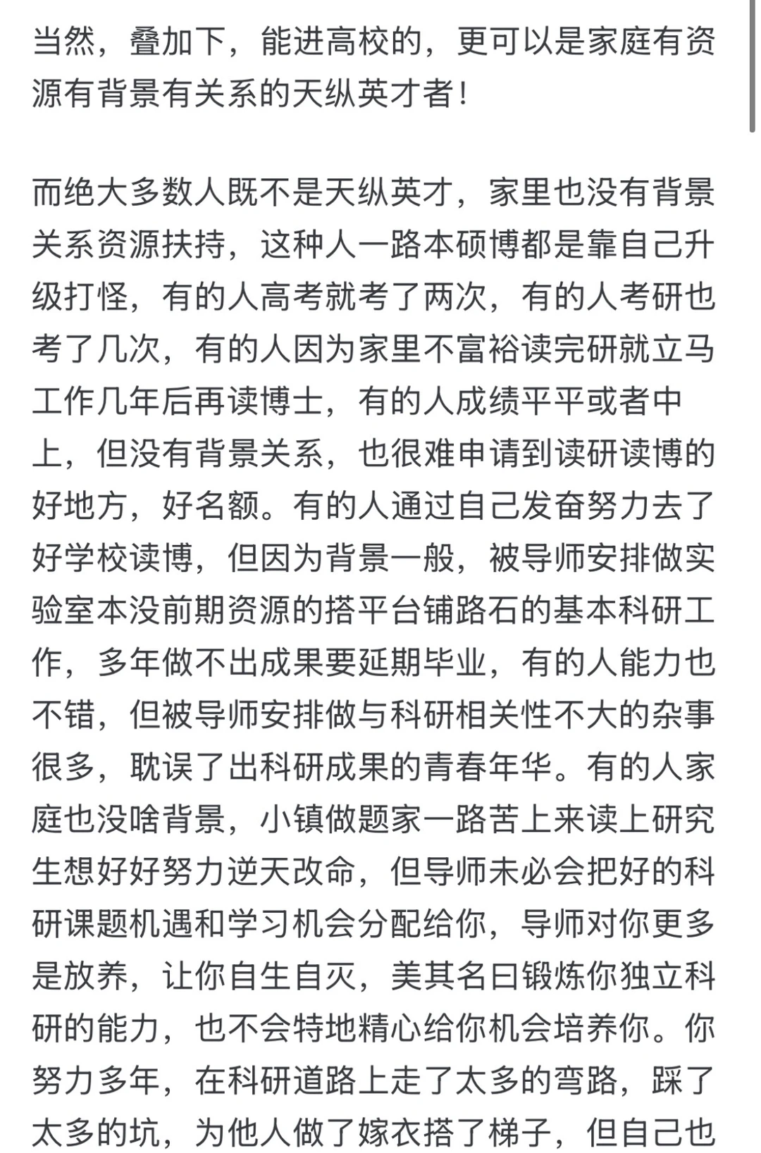 2. 家庭有资源有关系有背景的普通做题家。因为自己学习也不算差,一路家里帮着设计人生,资源扶持,本硕博上来。高考时,这些人也不是学霸,但家里也可以直接送去国外读书获得学位。