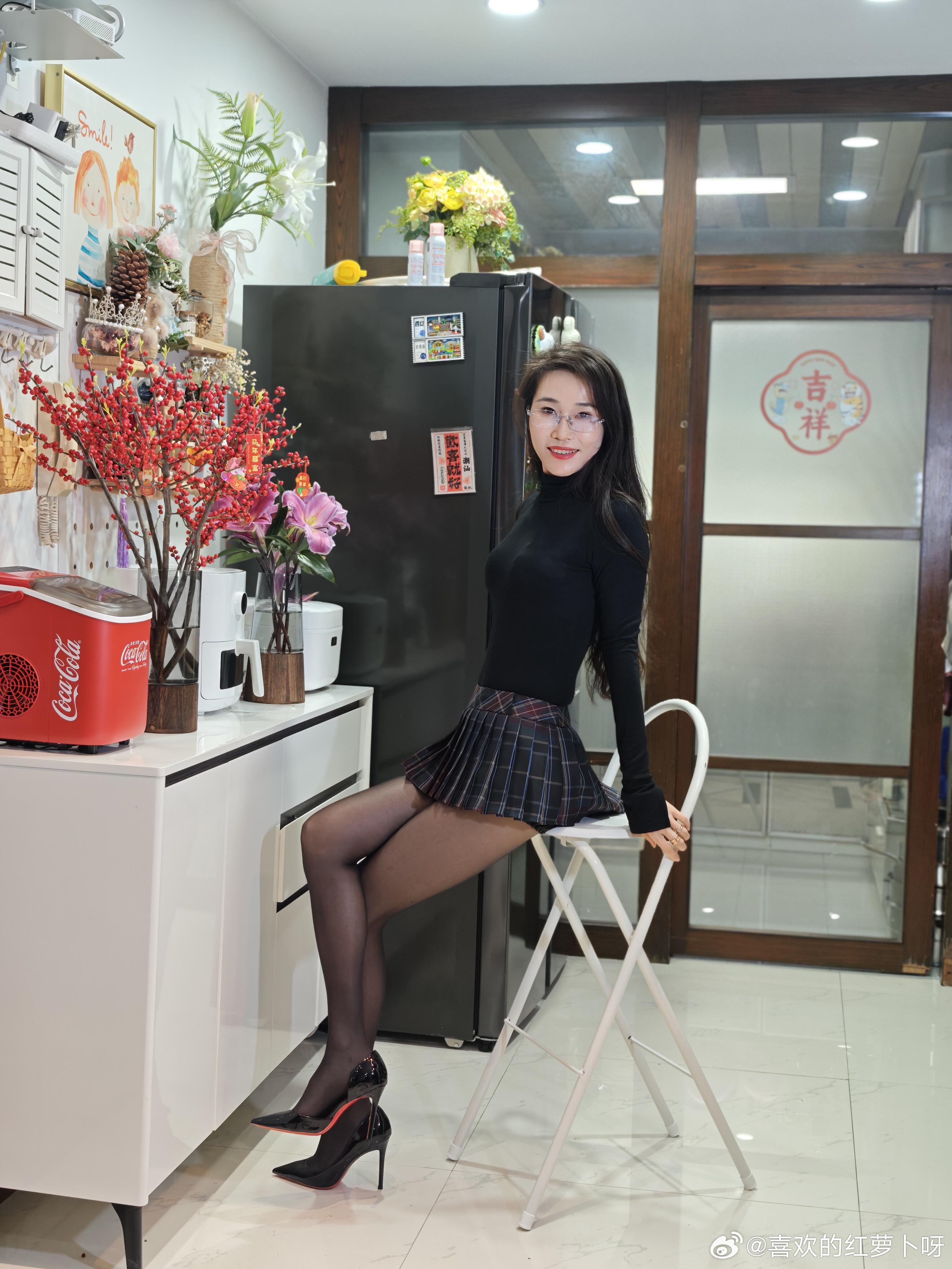 张元英真会穿。别人穿黑丝都是走全腿路线,她倒好,偏偏选了这种只到脚踝的短款黑丝