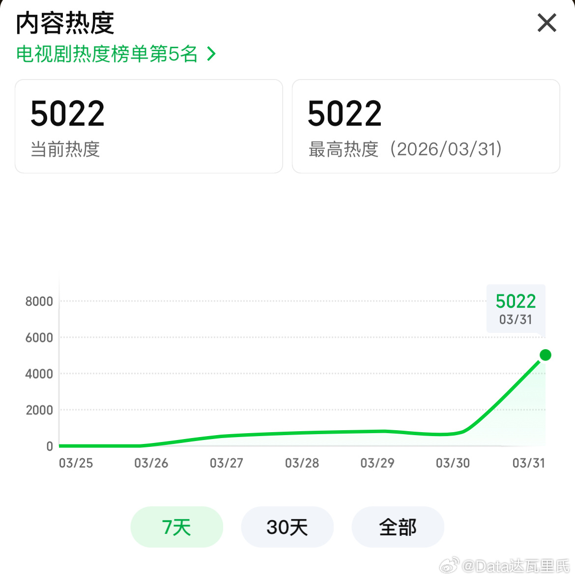 孙俪、吴慷仁危险关系爱奇艺热度破5000 实时5022