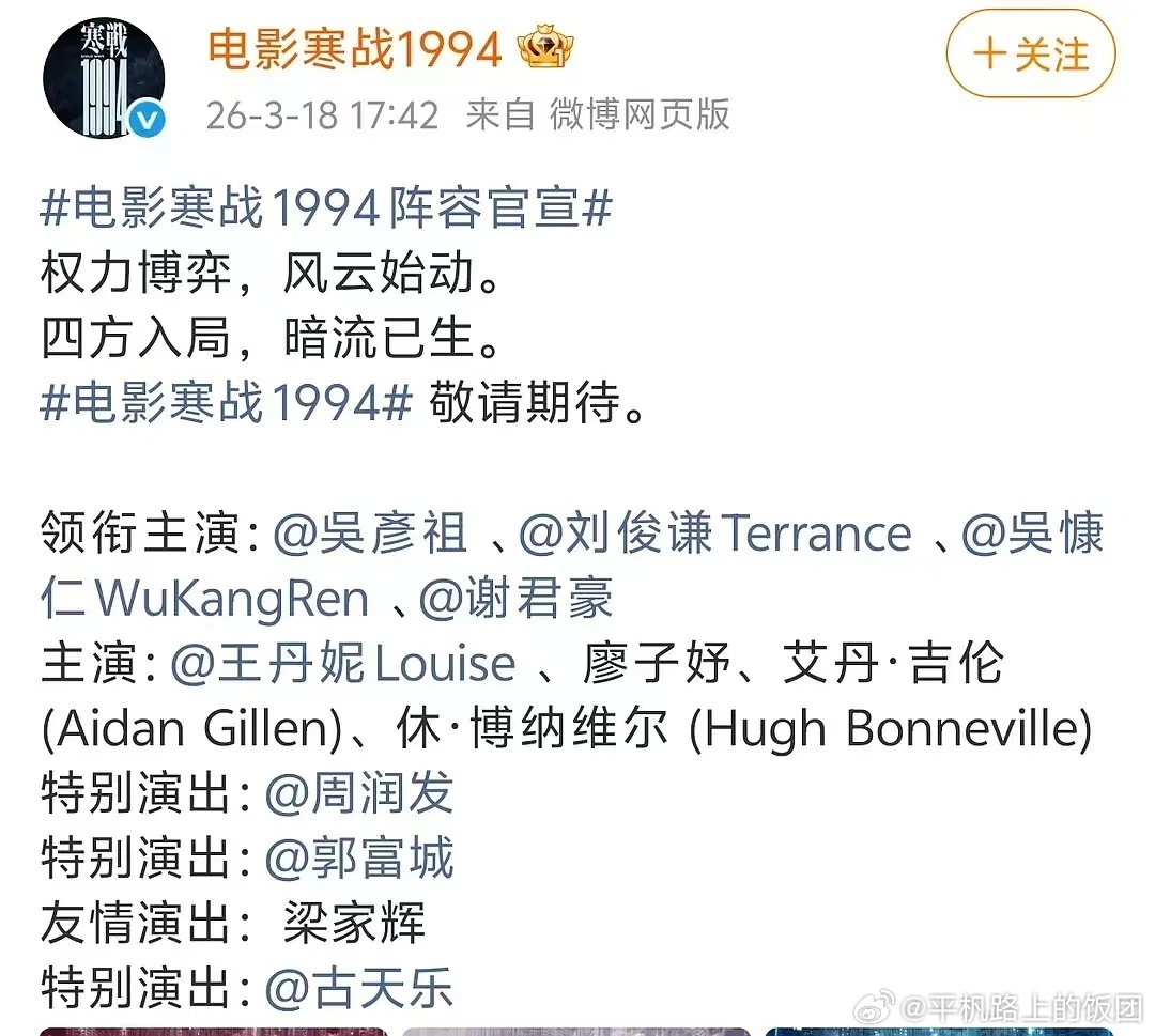吴彦祖和吴慷仁主演的《寒战1994》被爆出合作女演员廖子妤存在香港立场问题,多次在媒体面前公开接受采访称希望香港变成她向往的香港。