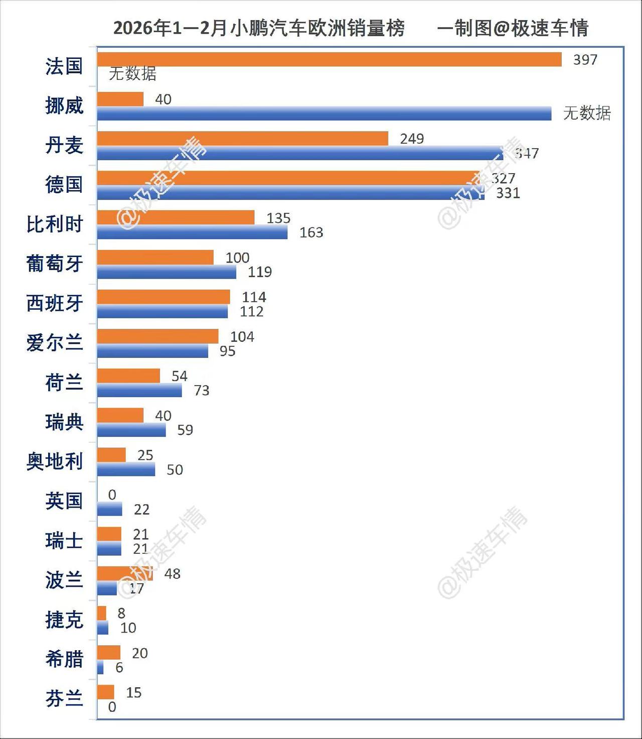 2026年2月,小鹏汽车欧洲销量突破两千。2026年2月,小鹏欧洲市场销量合计2064辆,同比大涨125%,市场份额接近0.2%(去年同期接近0.1%),排名欧洲市场全部品牌榜第35位,中国高端新能源品牌第1位。2026年1-2月,小鹏欧洲市场累计销量3914辆。极速车情 厉害了我的车 小鹏 小鹏汽车