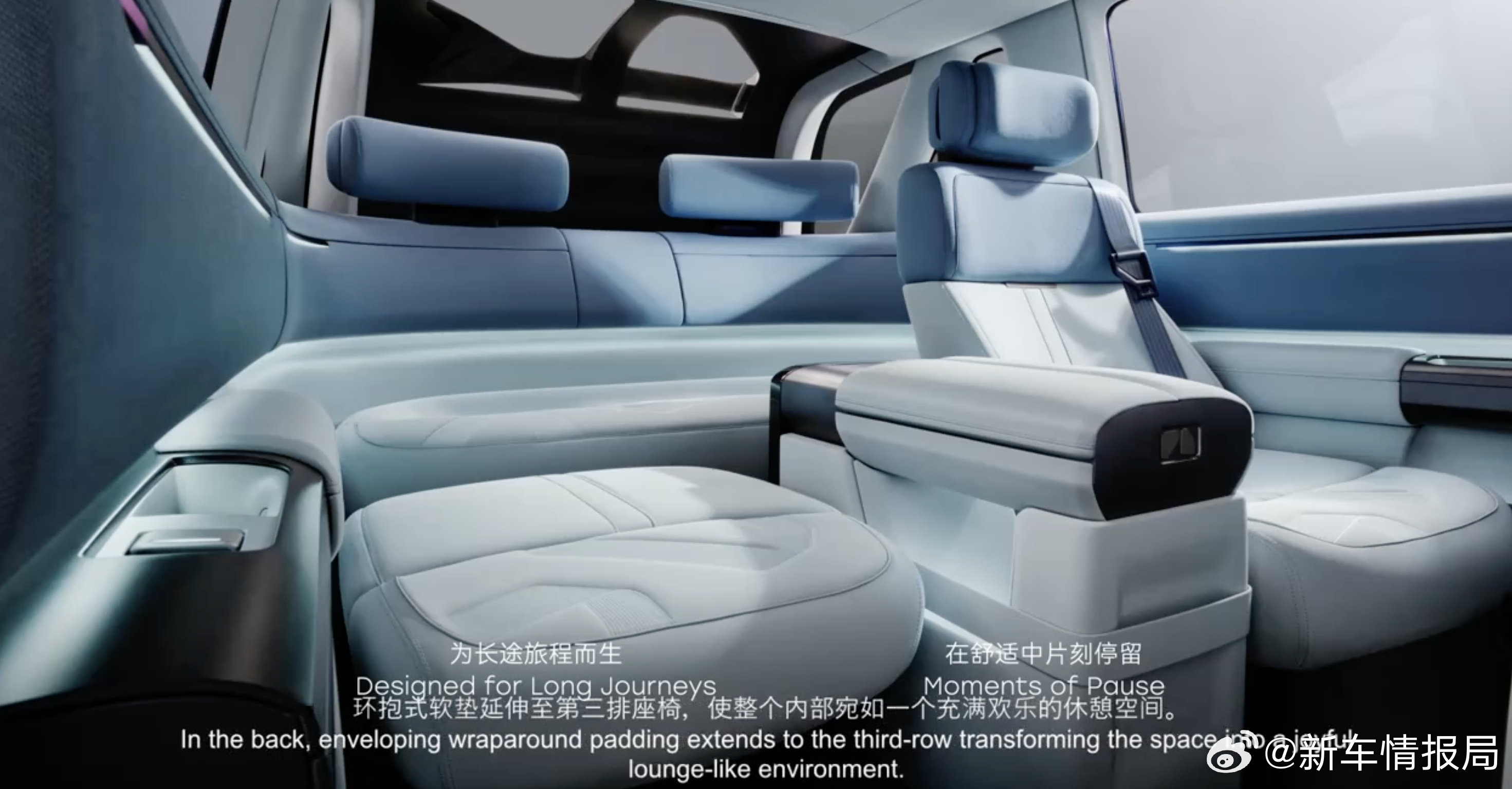 座椅部分采用三排布局,第二排座椅拥有多种调节方式。
