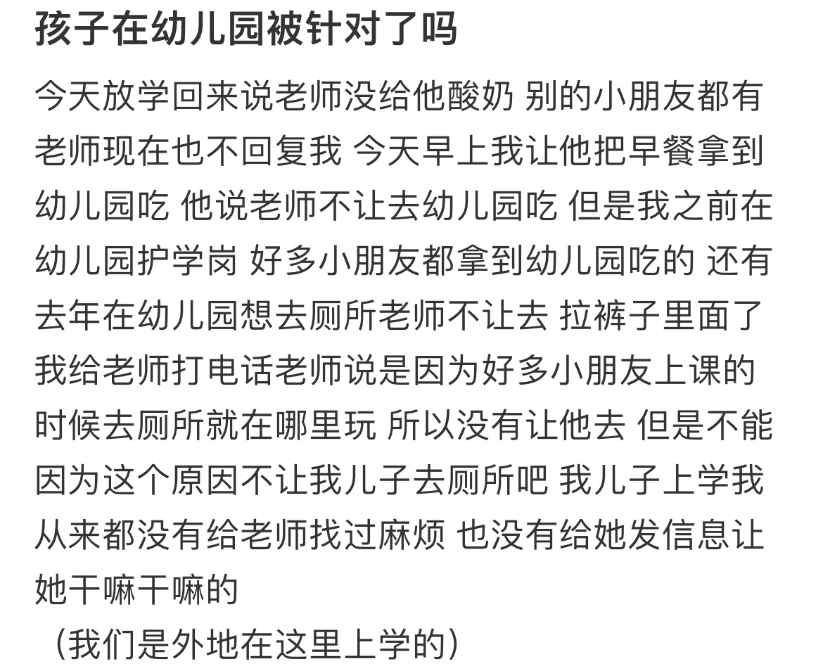 孩子在幼儿园被针对了吗