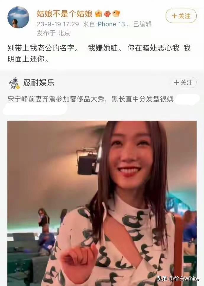 3月31日,张婉婷跟齐溪有什么深仇大恨? 看张婉婷不满有网友介绍齐溪带了宋宁峰前妻的抬头介绍,公开喊话网友别带宋宁峰的名字,后面的话对齐溪敌意很大,我不明白,宋宁峰是在跟齐溪分开后跟张婉婷在一起的,张婉婷跟齐溪之间没有交集,为什么对齐溪那么大的敌意,难道在宋宁峰没跟齐溪分开时,张婉婷就认识齐溪么?还是宋宁峰在张婉婷面前说了齐溪什么?按道理两个没有交集的人,应该不会有这么大的敌意吧! 张婉婷的意思是齐溪绿了宋宁峰,又不是第四方是谁,肯定不会是君君吧!