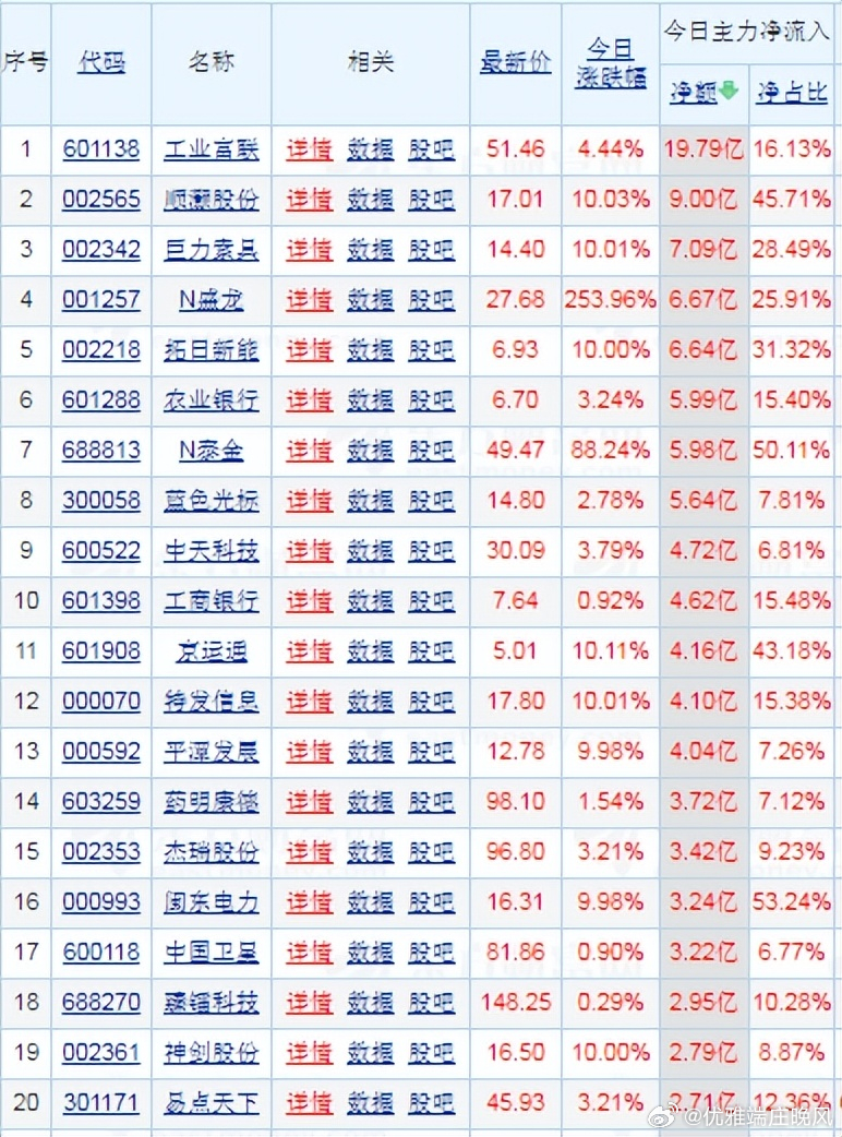 复盘潜龙:浮出水面。今日市场:市场整体:个股普跌。唯独工业富联、顺灏股份、巨力索具等个股逆势获得主力资金大幅流入,成为当日资金抢筹的焦点。今日透视:亦或梳理资金流向哪些龙头股: