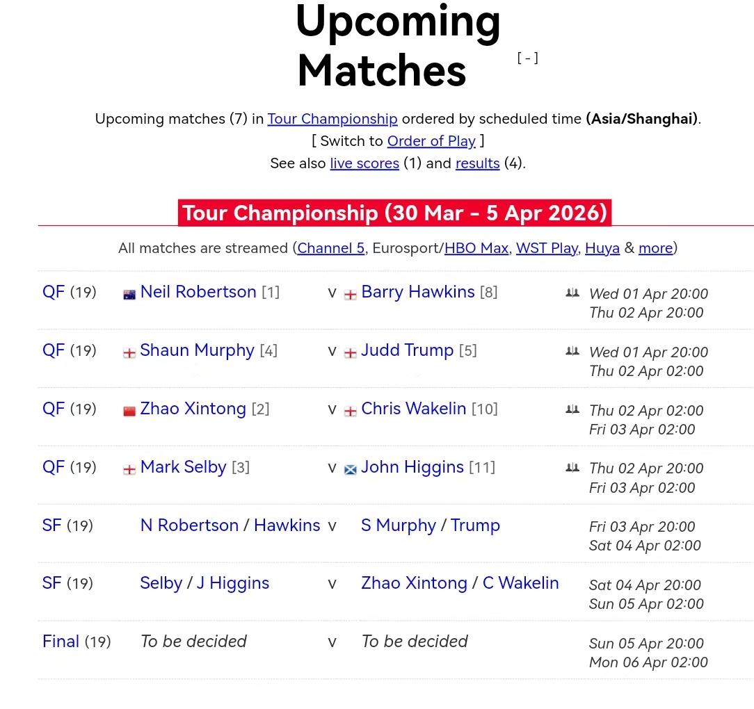 巡回赛八强出炉,吴宜泽6-2领先,被对手8连鞭淘汰。今天丁俊晖生日,主任生日快乐! 昨天第一阶段,吴宜泽发挥不错6-2取得不错的领先优势。今天第一局,吴宜泽就尝试打147,结果没成功。严重影响心态,造成溃败。被对手连胜8局淘汰。 吴宜泽不是第一次被连鞭,之前4-0领先斯佳辉,被斯佳辉10连鞭淘汰。从这个方面看,吴宜泽打球还不成熟,韧性还不够。 今天晚上八点,墨菲对阵特鲁姆普,罗伯逊对阵霍金斯,凌晨2点赵心童对阵韦克林,墨菲对阵特鲁姆普。 12进8,好几场打得都不太好,希望8进4,能有几场高质量比赛。 交手记录 小特32-14墨菲 萝卜20-14老霍 心童3-2伟哥 大师22-19老张