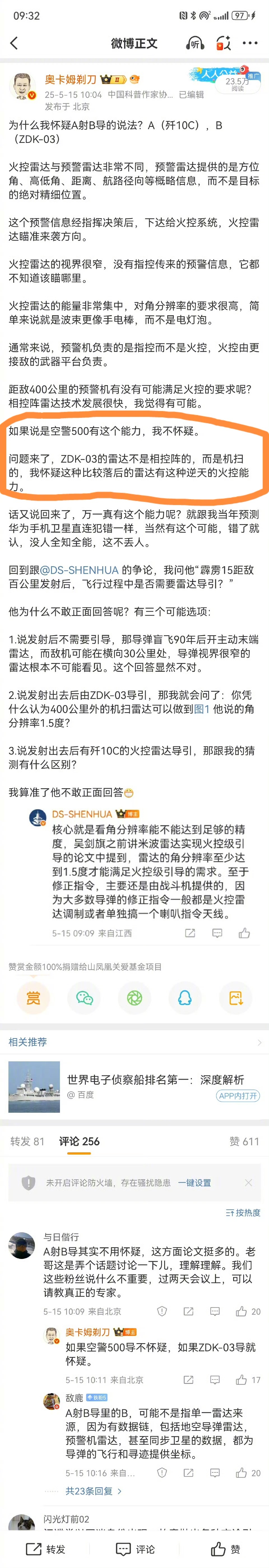 在去年的讨论中,我的原话是“如果说是空警500有这个能力,我不怀疑。问题来了,ZDK03雷达不是相控阵的……”见图3 的红线内容。