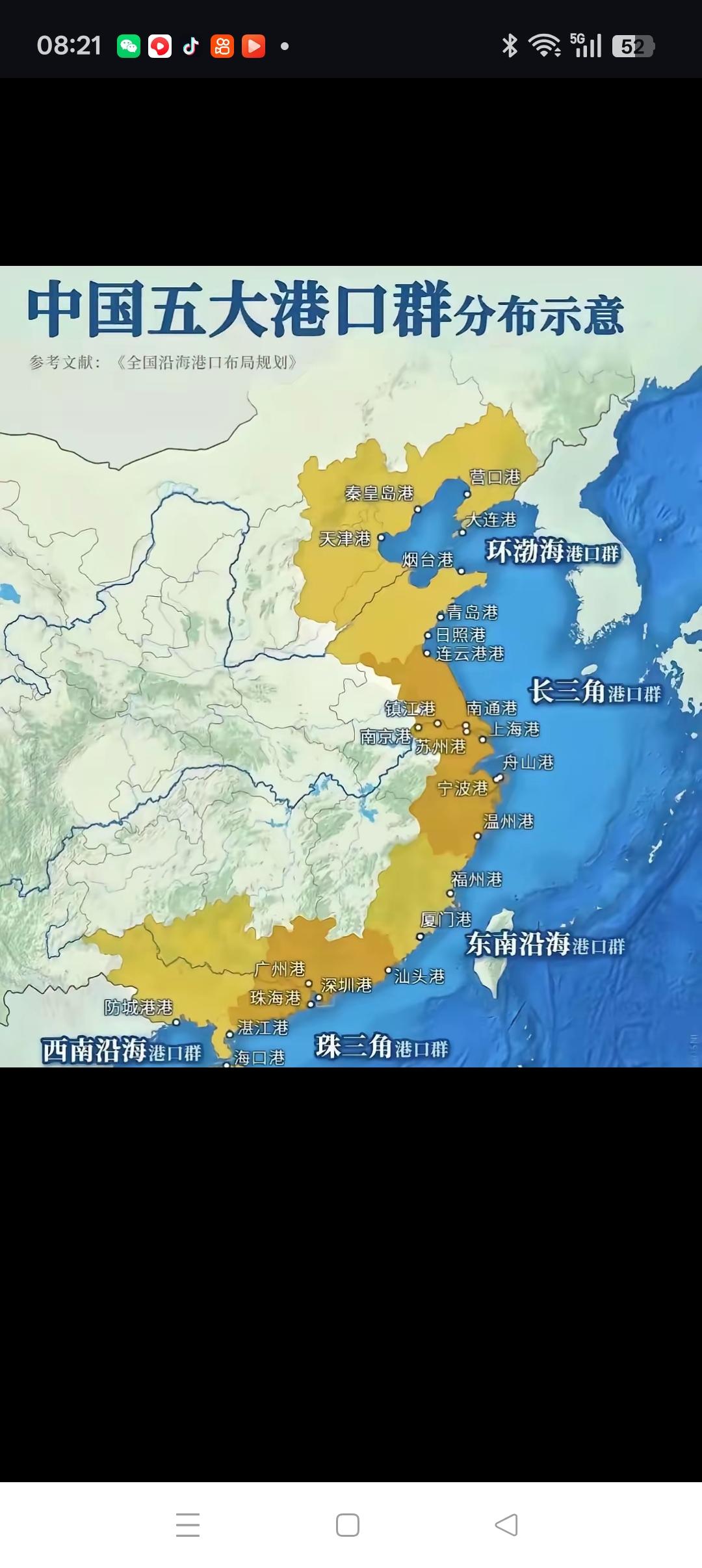 规划中为何独缺江苏沿海港口?! 从新近颁布的国家十五五规划纲要的沿海港口建设项目中可以看出,分别有山东的青岛港,上海的洋山港、浙江的宁波港、福建的厦门港、广东的广州港、广西的北部湾港、海南的洋浦港。在自山东开始,向南海岸线直到海南,唯独没有江苏沿海港口的建设项目,从中国五大港口群分布示意图上看,江苏的沿海港口至少有连云港、南通港两大港口,连云港市和南通市还都是国家确定的首批十四个沿海开放城市中的成员之一。在上述规划中,都没有江苏沿海港口的建设项目安排。究竟是何原因,百思不得其解。看了2025年全国主要港口集装箱吞吐量20强榜单后,我恍然大悟,也许是因为连云港、南通港的集装箱吞吐量未进前十所致。