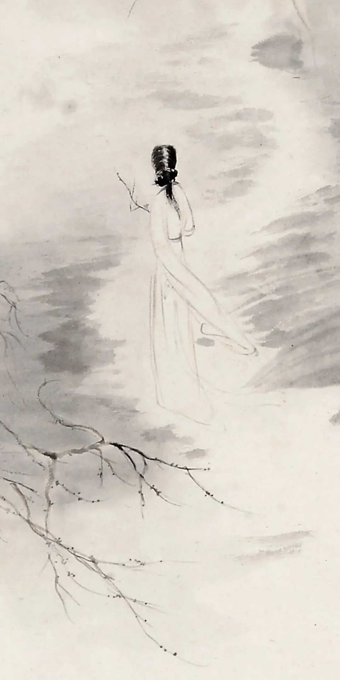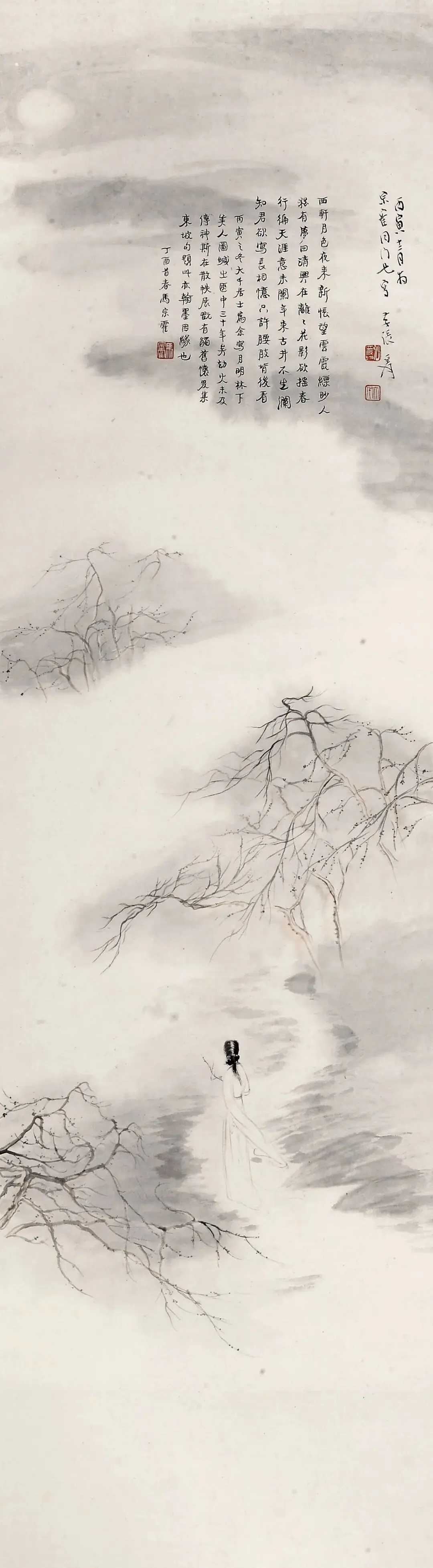 张大千《月明林下美人》,水墨纸本 34×121 cm。这就是中国风遇见艺术