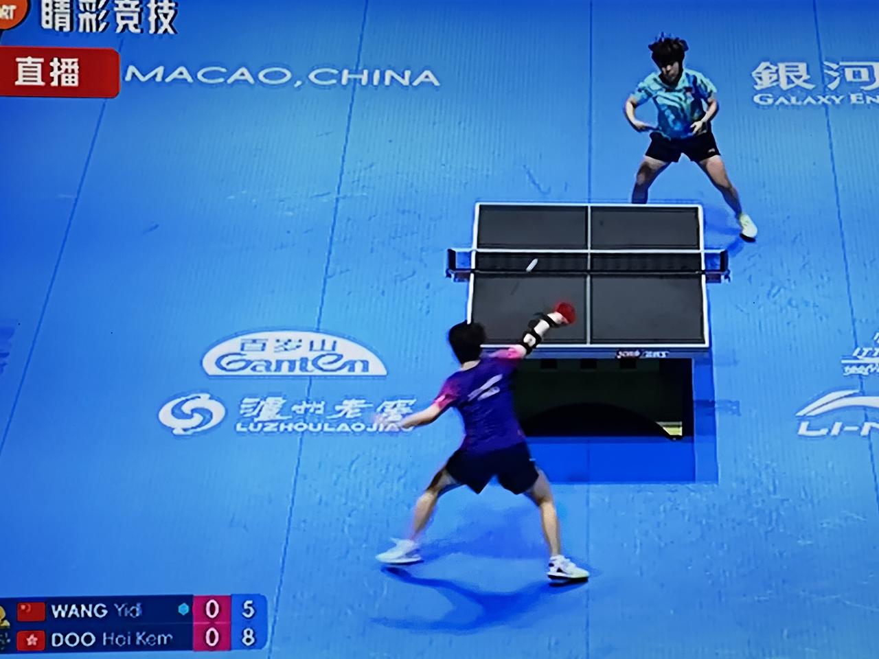 终于在精彩竞技频道收看到乒乓球澳门世界杯小组赛第三轮的赛事直播了! 4月1日9:35,女单小组赛第三轮, 中国队的王艺迪对阵中国香港队的选手。 9:37正式开始第一局的比赛,王艺迪先发球,对方得分,并很快取得2分的领先。 哇,对方又得一分,三分领先。 王艺迪追上一分, 紧接着又追一分,二比三, 二比四,三比四,王一迪再追一分, 五比三了,五比四, 五比五,王艺迪紧追不放,终于把比分追平了。 但是很快又五比六了,五比七,五比八, 六比九,七比九,比分在这个阶段交替上升,王艺迪加油!八比九, 八比十,对手先拿到第一局的局点, 八比十一,中国香港队的对手拿下了第一局的胜利。 王艺迪加油! 场上的竞技如火如荼, 一起来看直播吧!