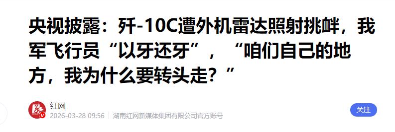 3月25日,中部战区飞行员史录权开着歼-10C巡逻时。竟然在自家大门口,被外机火控雷达死死锁定了! 可能有人不懂这意味着什么,我用最直白的话跟大家说,这就相当于你在自己家门口散步,突然有人把枪举起来,打开保险,把你的脑袋死死框在准星里,就差扣动扳机那一下,危险程度可想而知。 咱们平时看军事新闻,常听到“雷达照射”,但普通搜索雷达和火控雷达锁定完全是两码事,前者只是“看看你在哪儿”,后者是“已经算好怎么打你”,对方的导弹系统已经接收到了歼-10C的距离、方位、速度等所有参数,只要飞行员按下按钮,导弹就能直扑而来。 事发当天,史录权驾驶歼-10C正在我国近海执行常规巡逻任务,这是他无数次巡逻中的一次,原本一切顺利,可座舱里突然响起尖锐的告警声,仪表盘上红灯狂闪,这是歼-10C的雷达告警系统在紧急提醒——被火控雷达锁定了! 换做普通人,此刻早已慌了神,但史录权没有,作为中部战区的资深飞行员,他经历过无数次实战化演练,瞬间就冷静了下来,脑子里快速过着处置流程。 他后来回忆说:“这就是一种挑衅,他如果是友好的,不会开雷达。咱们自己的地方,我为什么要转头走?”这句话里,藏着中国飞行员的底气和血性。 要知道,被火控雷达锁定后,常规操作是大幅机动、抛洒干扰弹摆脱,但史录权反其道而行之,他没有退缩,反而驾驶歼-10C迎了上去,用同样的方式对这架外机实施了雷达锁定,把主动权抢了回来。 可能有人会问,他为什么敢这么做?底气一方面来自歼-10C的硬核性能,这款三代半战机可不是吃素的,它搭载了先进的有源相控阵雷达,反应速度快到微秒级,还配备了红外搜索跟踪系统,不用开启雷达,就能靠感知目标的热辐射悄悄锁定对方,让外机毫无察觉。 更关键的是,歼-10C的电子对抗系统能快速识别敌方雷达信号,还能释放干扰,让对方雷达屏幕出现“雪花点”,根本看不清目标。 另一方面,底气来自平时的高强度训练,对我们来说,这种空中对峙惊险万分,但对一线飞行员而言,这早已是家常便饭。 近年来,外机在我国周边空域的活动越来越频繁,他们打着“巡航”“侦察”的旗号,频繁试探我国的防空底线,而中国空军的常态化战备水平也在不断提升,从接到指令到升空应对,往往只需要十几分钟,飞行员的每一个动作、每一次决策,都是千锤百炼的结果。 这次对峙,全程充满了心理博弈,空中对抗往往不会真的开火,比拼的就是谁更冷静、谁更有底气。史录权的强硬回应,让外机彻底慌了神,要知道一旦双方互相锁定,谁先退缩谁就输了,外机显然没料到中国飞行员会如此果断,没过多久就解除了锁定,调转方向匆匆撤离。 而史录权在确认外机撤离后,也立刻将雷达转为待机状态,既展现了实力,也保持了克制,尽显专业素养。 很多人不知道,这并不是孤立事件,近半年,外机在我国黄海、东海等空域的挑衅越来越频繁,试图通过这种方式试探我国的反应速度和战术模式,但每一次中国空军都能果断应对,用实力捍卫国家领空主权,从歼-16驱离外军隐身战机,到歼-10C反向锁定外机,我们能清晰地看到,中国空军的应对方式越来越主动,越来越自信。 其实,我们之所以能安安稳稳地生活,正是因为有无数像史录权这样的飞行员,驾驶着先进的战机,日夜守护在祖国的蓝天上,他们在万米高空,时刻面临着未知的危险,用血性和专业,筑起了一道坚不可摧的空中屏障。 史录权的故事告诉我们,和平从来不是靠妥协换来的,尊严只在剑锋之上,中国的领空,不容任何外机挑衅,中国空军有能力、有信心,应对一切外部威胁,守护好我们每一个人的“家门口”。