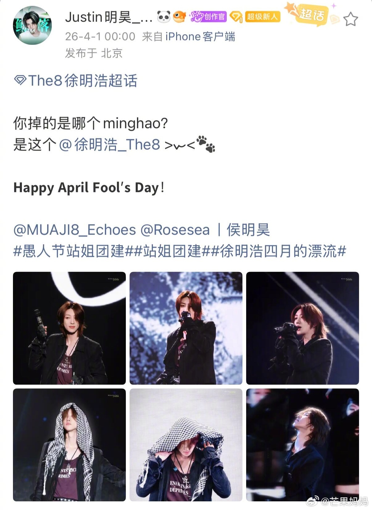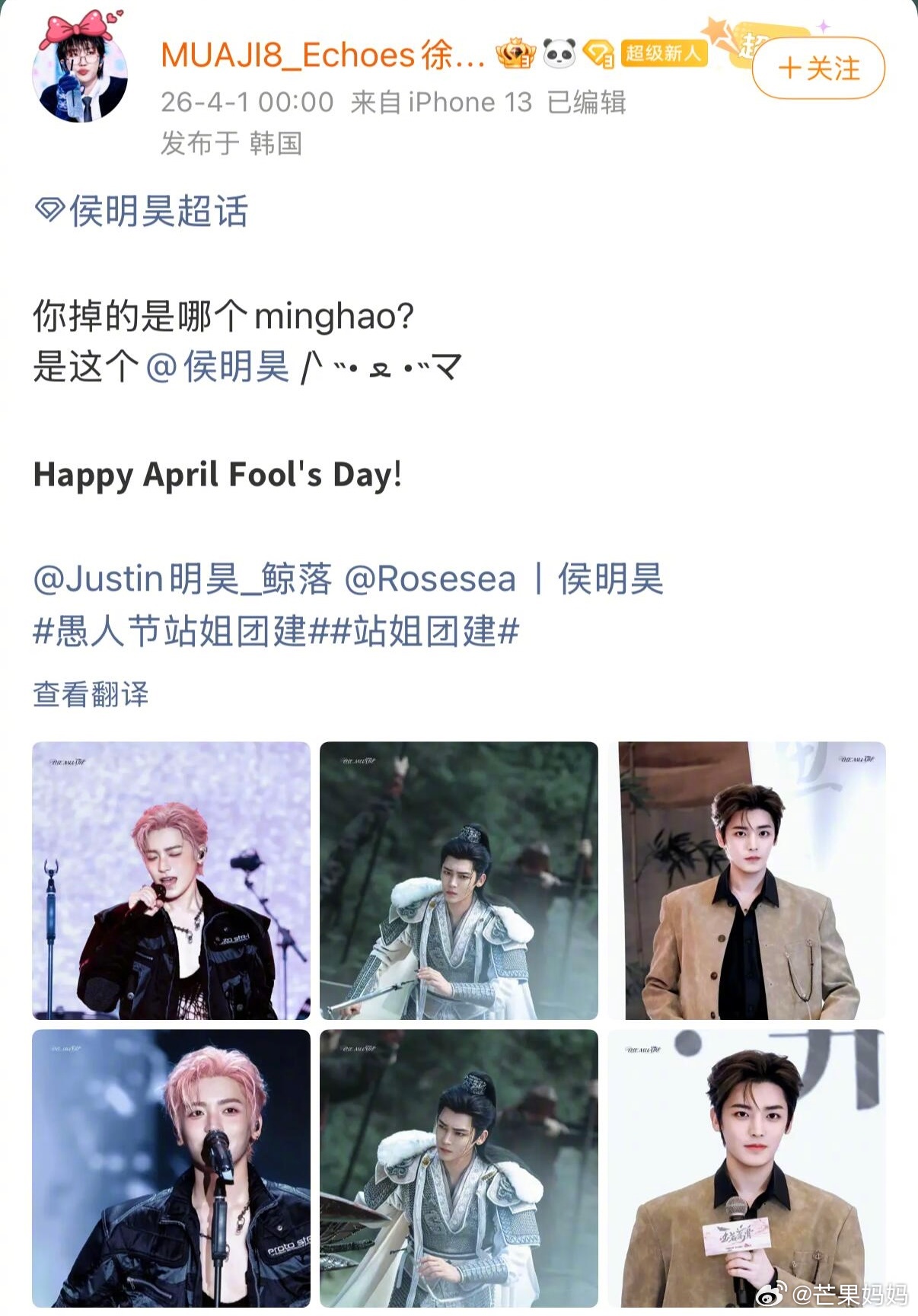 黄明昊侯明昊徐明浩站姐就这样梦幻联动,好有意思的minghao站姐团建愚人节