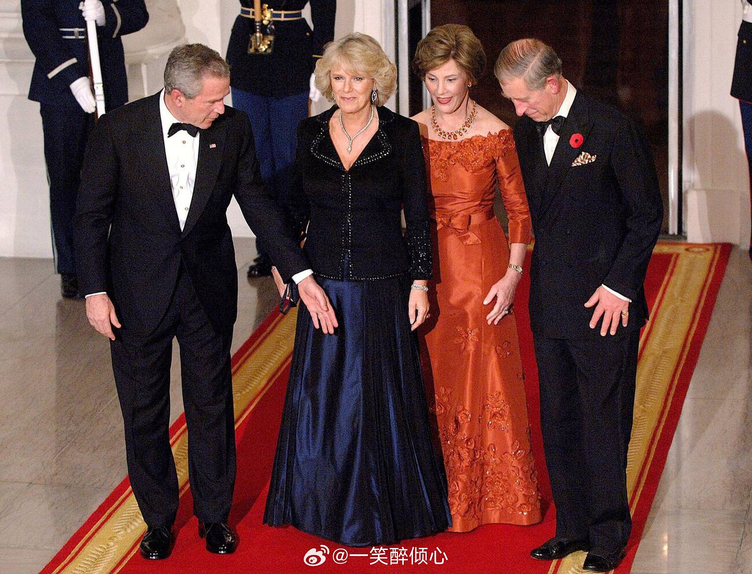 2005年11月2日,威尔士亲王查尔斯王储和康沃尔公爵夫人卡米拉在白宫参加晚宴🇺🇸那时候是他们婚后第1️⃣次出国旅行。