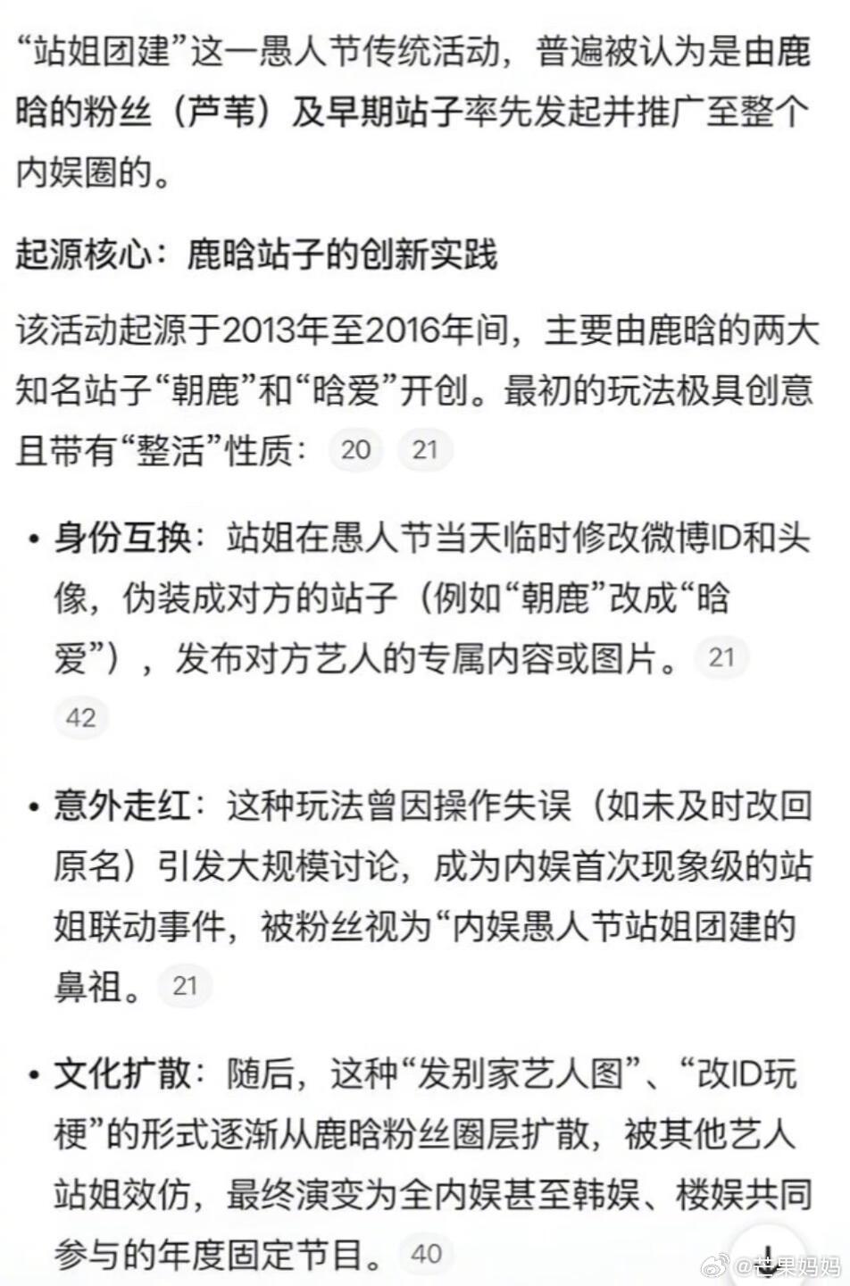 站姐团建愚人节冷知识:内娱愚人节站姐团建起源于鹿晗的两个站姐