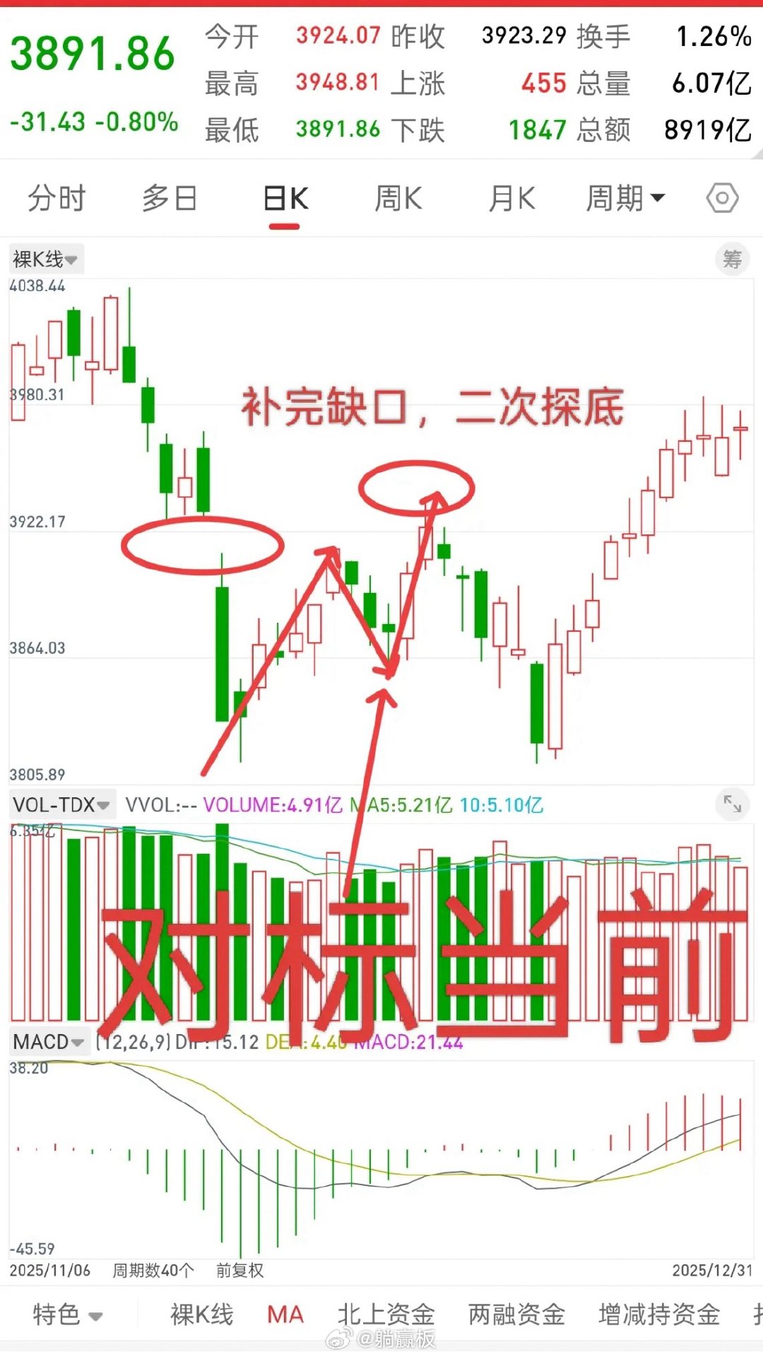 当下位置,完全可以对标去年12.4号,而当时12.5/12.8两天补完上方缺口,就开启了新一波二次调整。
