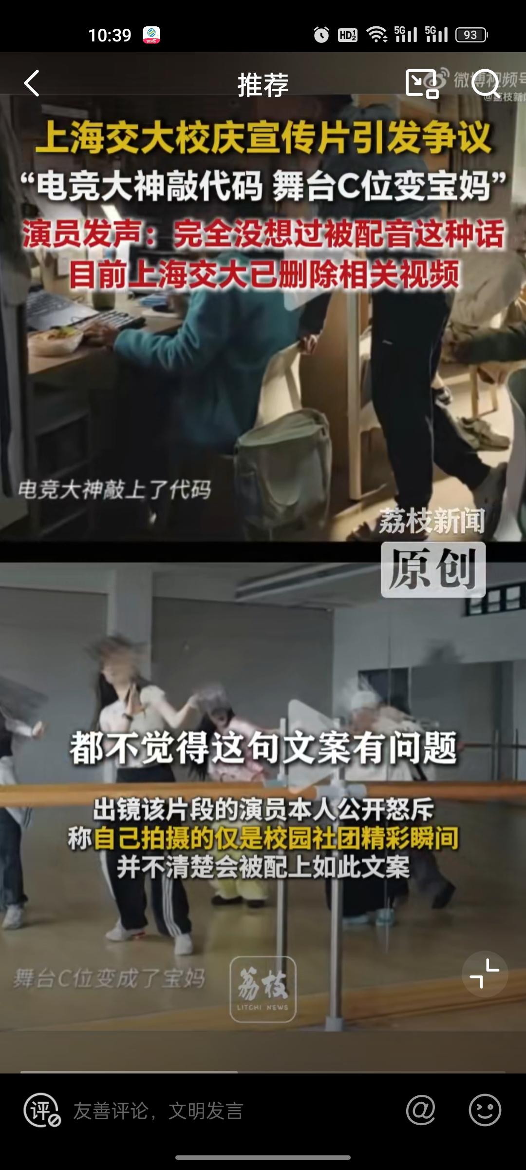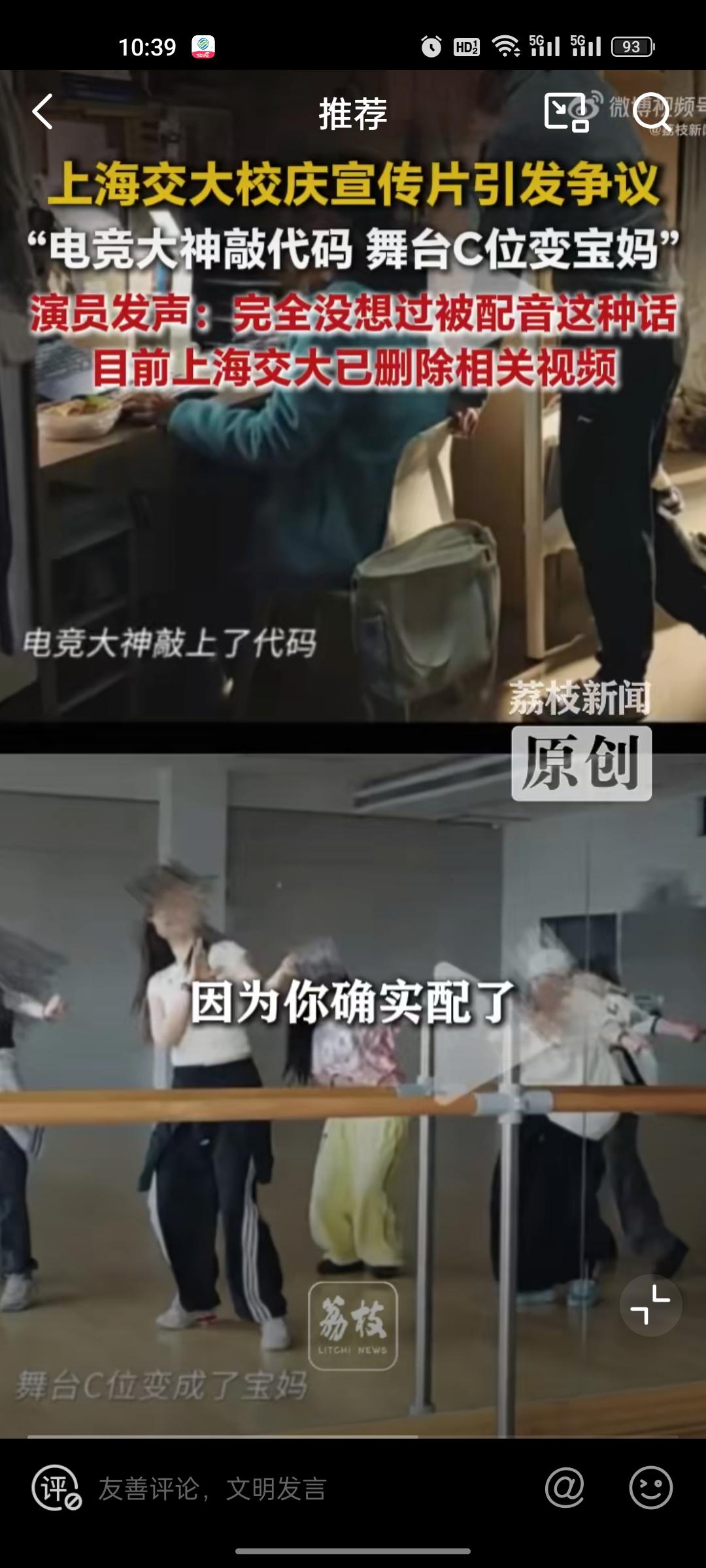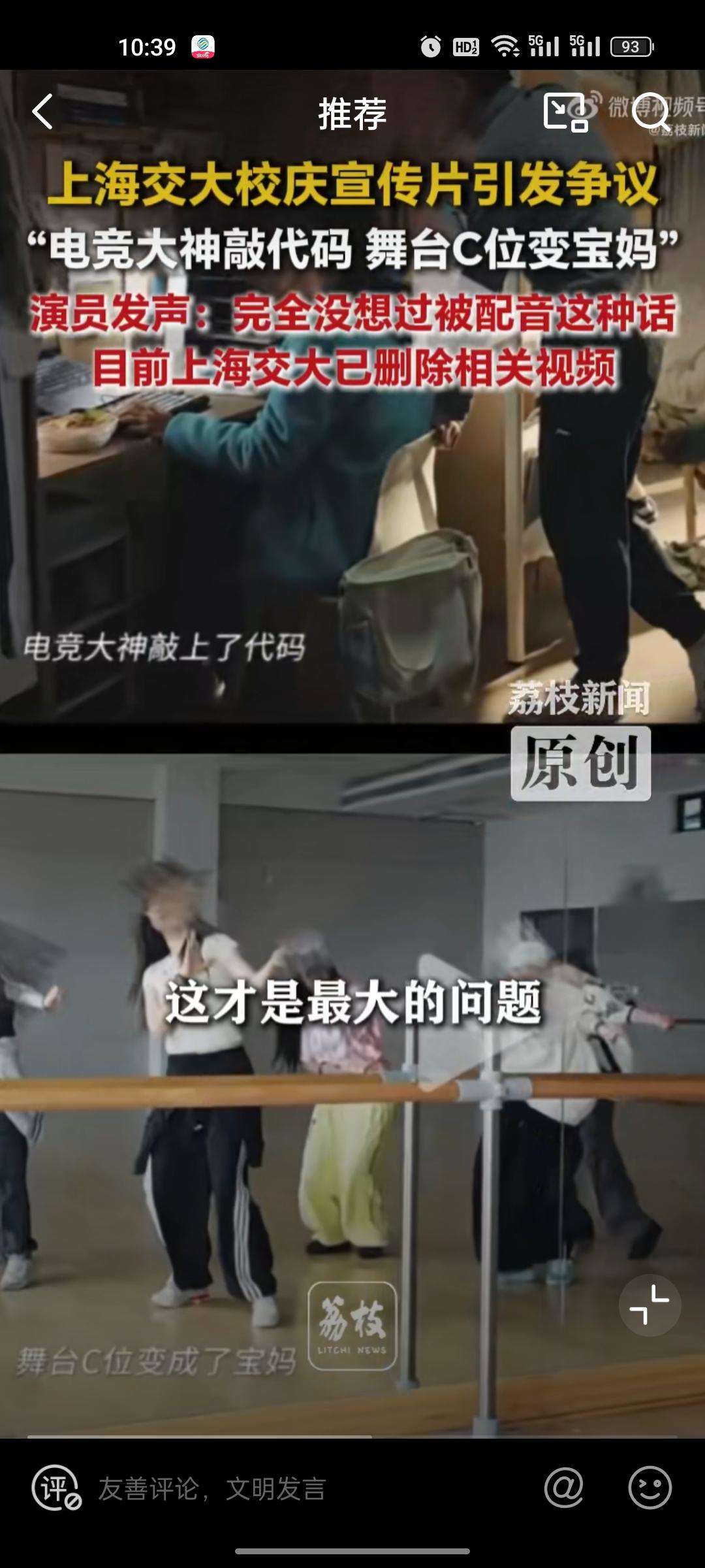 上海交大校庆宣传片引争议。 上海交大130周年校庆的微电影。 里面对男生的旁白是“电竞大神敲上了代码”,而女生的旁白是“舞台C位变成了宝妈”。 结果拍摄的女演员看到后跳出来斥责,称根本不知道会有这样的文案。 为什么男生强调职业发展,女生强调生育价值。 目前上海交大已经删掉了影片。 交大创意大赛 上海老交大 上海校庆