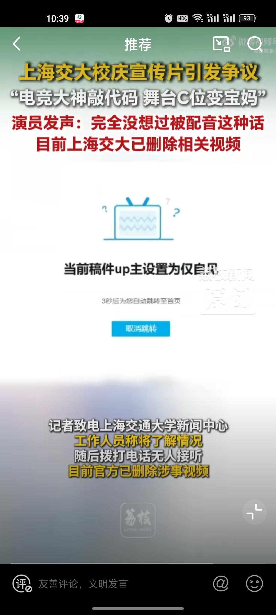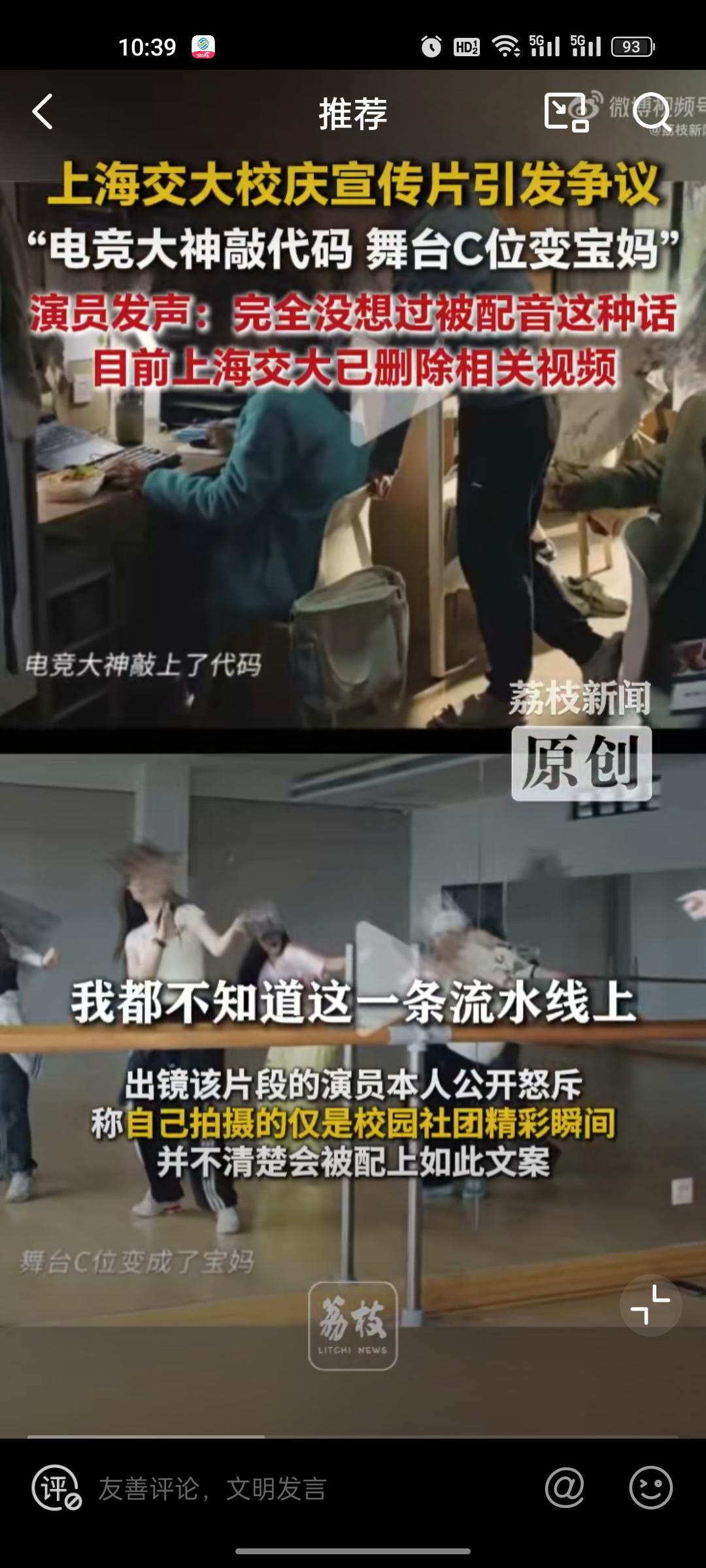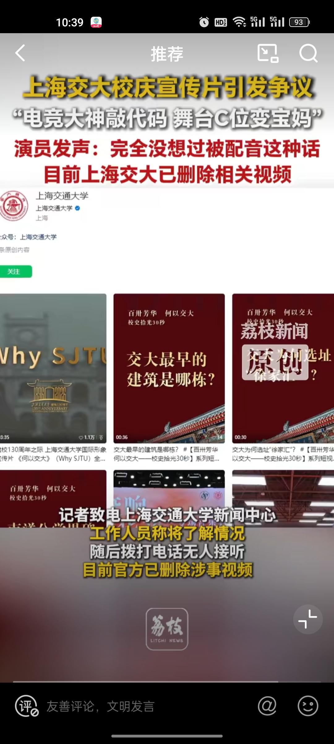 上海交大校庆宣传片引争议。 上海交大130周年校庆的微电影。 里面对男生的旁白是“电竞大神敲上了代码”,而女生的旁白是“舞台C位变成了宝妈”。 结果拍摄的女演员看到后跳出来斥责,称根本不知道会有这样的文案。 为什么男生强调职业发展,女生强调生育价值。 目前上海交大已经删掉了影片。 交大创意大赛 上海老交大 上海校庆
