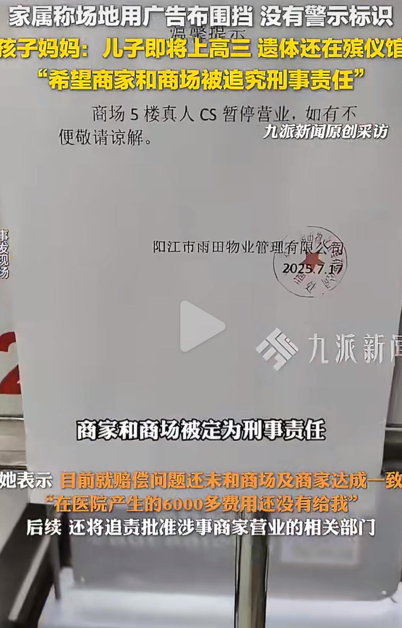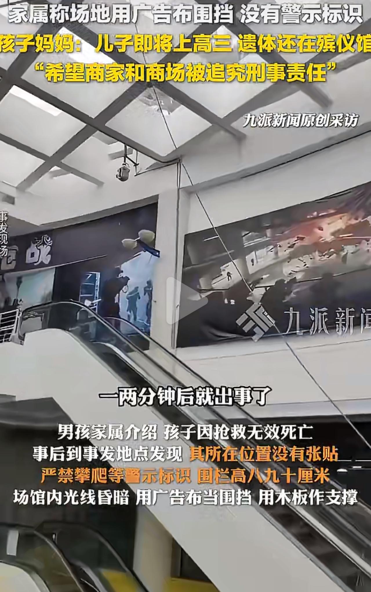 2025年7月16号深夜,广东阳江那个18岁的高中生,在商场五楼的俱乐部玩游戏。当时他就想着找个好点位躲着,压根没考虑那么多,反手就爬上了只有80厘米高的护栏。他看着那印着仿砖墙图案的广告布,心里还美滋滋的,觉得这掩体选得真妙,完全没意识到这是个拿命挖的坑。 下一秒,支撑广告布的木方“咔嚓”一声断了。那一瞬间,少年心里肯定全是懵的,那种绝望和失重感,根本无法形容。他从五楼直坠,砸在三楼扶梯上又弹到二楼,年轻的生命,就这样戛然而止。 大半年后,官方通报来了,认定这是生产安全责任事故。少年冒险攀爬确实有责任,但这俱乐部的问题才是罪魁祸首!护栏高度严重不达标,用广告布冒充实体墙,安全制度形同虚设,连个安全员都没有。 最让人后背发凉的是,人走了,俱乐部只垫付了3600块钱就失联,面对家属140万的索赔,直接甩锅说“走法律程序”。 看着这样的新闻真的心情沉重。行业里为了省钱各种偷工减料,监管也跟不上。生命只有一次,不管玩什么,安全底线绝对不能碰!别让一时的刺激,变成一辈子的遗憾。真人CS 广东18岁男孩玩真人CS时坠亡 真人cs场馆