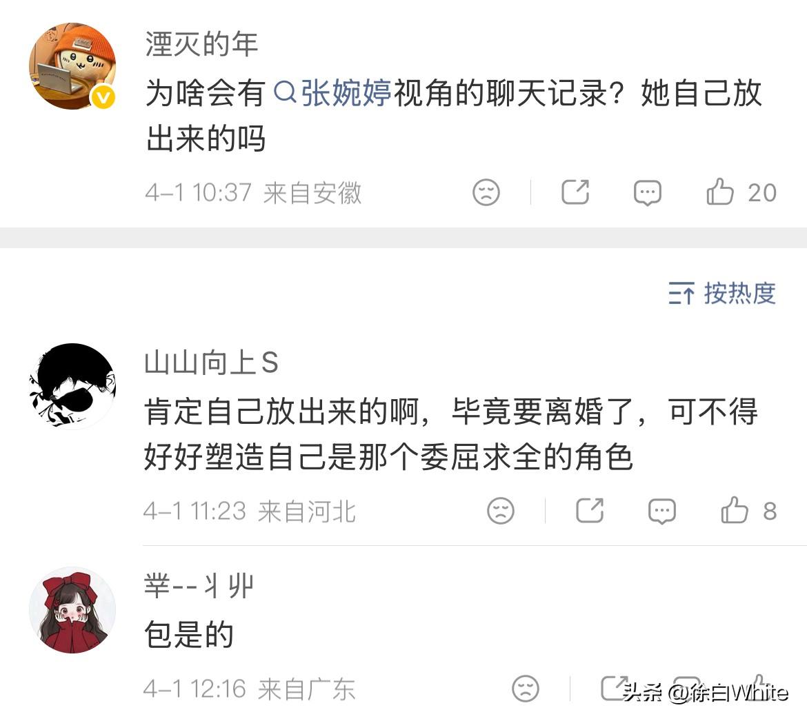 4月1日,娱记爆张婉婷曾向董璇求助 一开始我以为是第三方找娱记曝的宋宁峰,现在看娱记爆的内容,竟然是张婉婷把聊天及录音内容给的娱记,属实让我有些意外! 昨天发的是第三方跟宋宁峰的对话跟聊天内容,很容易让大家以为是第三方想借此拆散宋宁峰张婉婷,没想到今天发的是张婉婷跟董璇的聊天,这个第三方不可能能拿到,看娱记的语气,也能看出,是张婉婷给的…… 今天宋宁峰发长文道歉维护张婉婷,说张婉婷拿照片威胁第三方是他的错,张婉婷好厉害啊!只是她不应该为了热度把董璇也牵扯进来,让别人保密,她曝光别人……这个人不能深交!合照不会也是张婉婷给的吧……