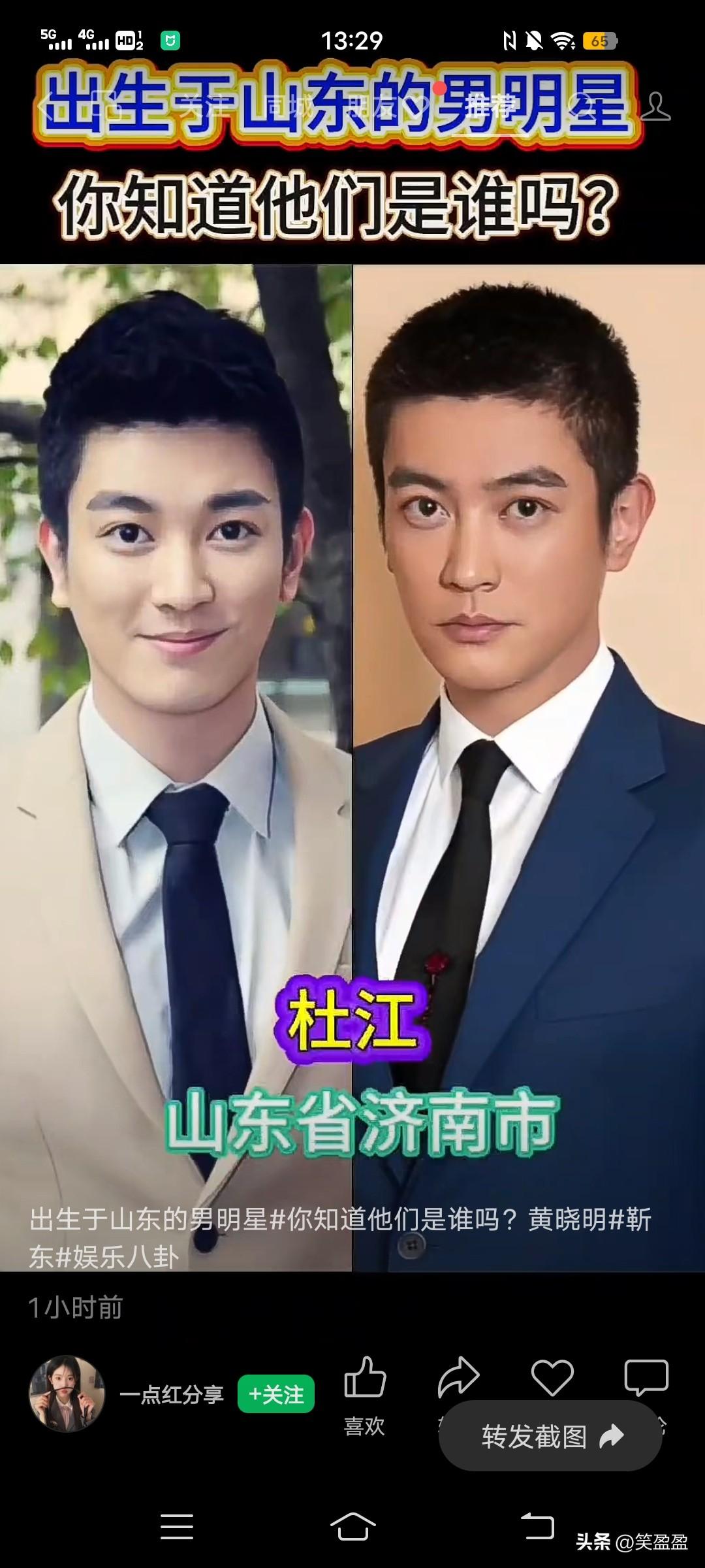 出生于山东的男明星