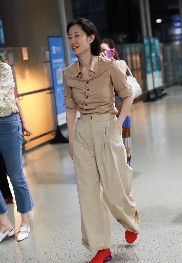 刘敏涛这套穿搭,中年姐妹直接抄作业!💡 ✅ 卡其色细条纹衬衫:木耳边肩线+卷袖设计,显瘦显气质,温柔又干练 ✅ 高腰阔腿西裤:垂坠感拉满,遮肉显瘦,优化身材比例 ✅ 细节亮点:短发造型+红色厚底鞋,减龄又吸睛,轻松拿捏高级感 简约不简单,通勤出街都适配,不挑年龄不挑身材! 刘敏涛穿搭 中年穿搭 通勤穿搭 日常穿搭