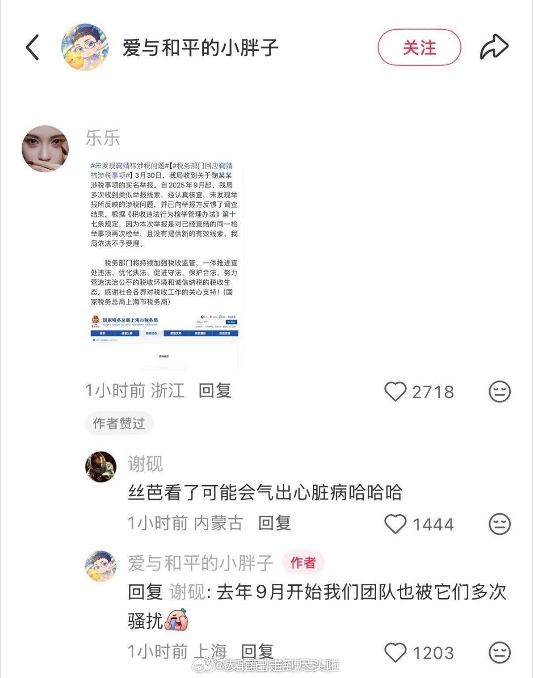丝芭传媒发声明要告《月鳞绮纪》承制方,指对方在明知鞠婧祎合约问题,不顾丝芭多次告知,属于侵权行为,目前声明已删除王一栩之前也说丝芭多次骚扰他们团队看来丝芭到处出警,但是承制方就是不了他们呀,属于想封杀但是没有封杀的实力 丝芭 月鳞绮纪 月鳞绮纪开播 月鳞绮纪