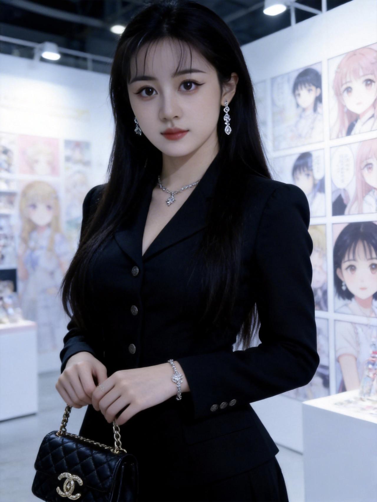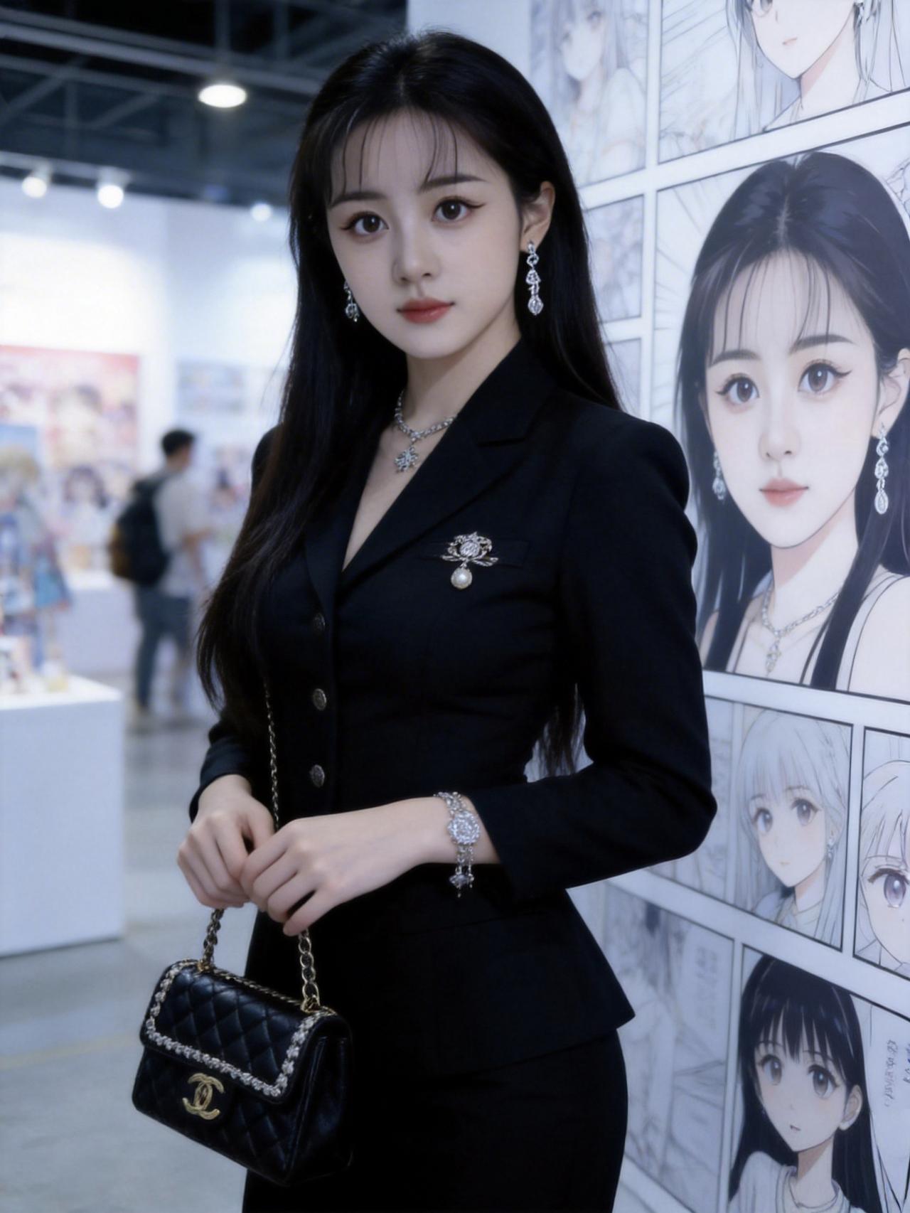 这套是优雅贵气黑白风,核心是黑色大衣+白衬衫+缎面半裙的搭配:宽松大衣自带松弛贵