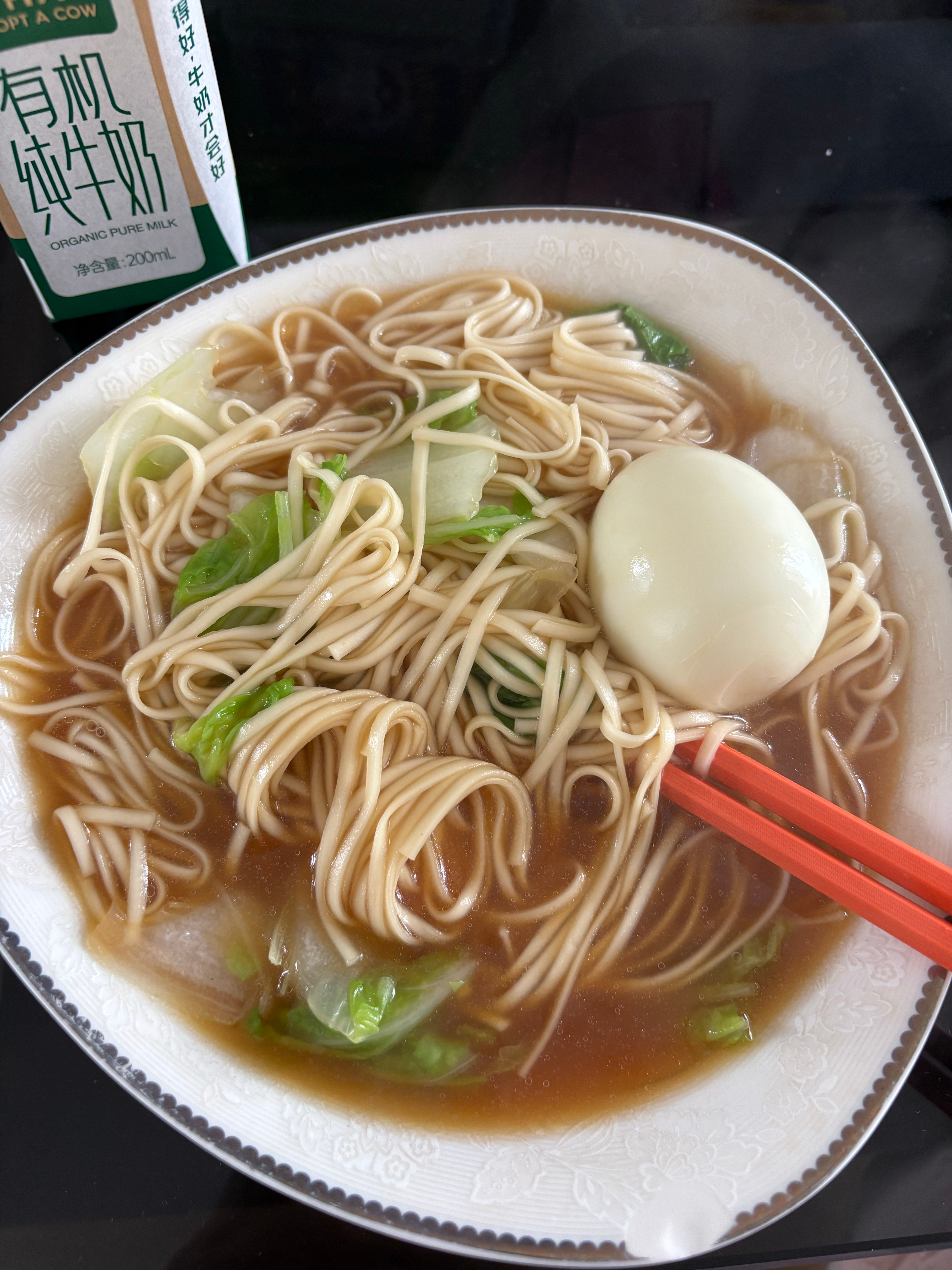 一个人的吃食真的好简单~挂面猪油一拌 再加个青菜鸡蛋 出锅🍜