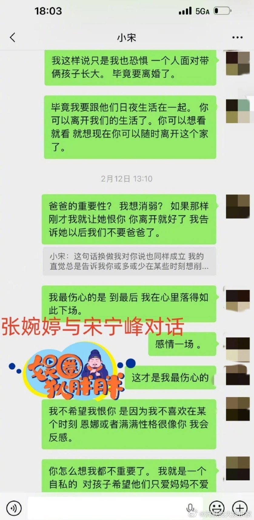 他俩一开始在节目里就应该结束了,一开始是pua的妻子,憋屈的丈夫,现在就要变成了受不了出轨的丈夫和崩溃的妻子。他俩就好像天道好轮.回,苍天饶过谁,都是受.害.者也都是加.害.者,但真正受害的只有孩子。宋宁峰 是我亲手把婉婷逼成那样曝宋宁峰张婉婷聊天记录