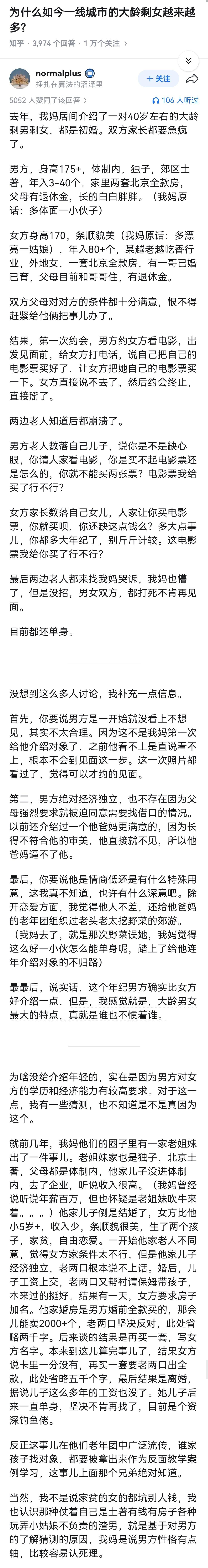 记录者终于明白大龄剩女为什么不能碰了。今年春节期间,表弟经熟人介绍认识了一个大