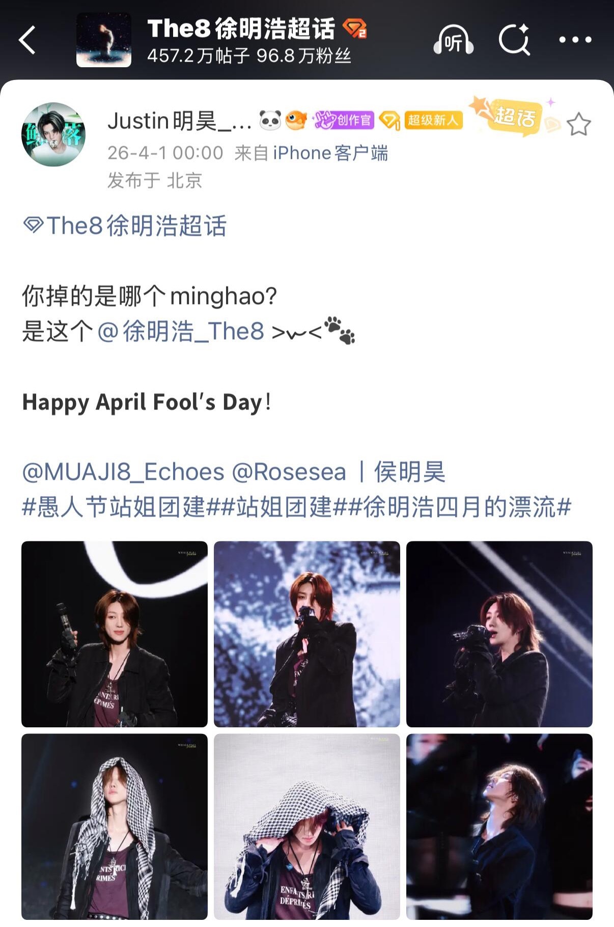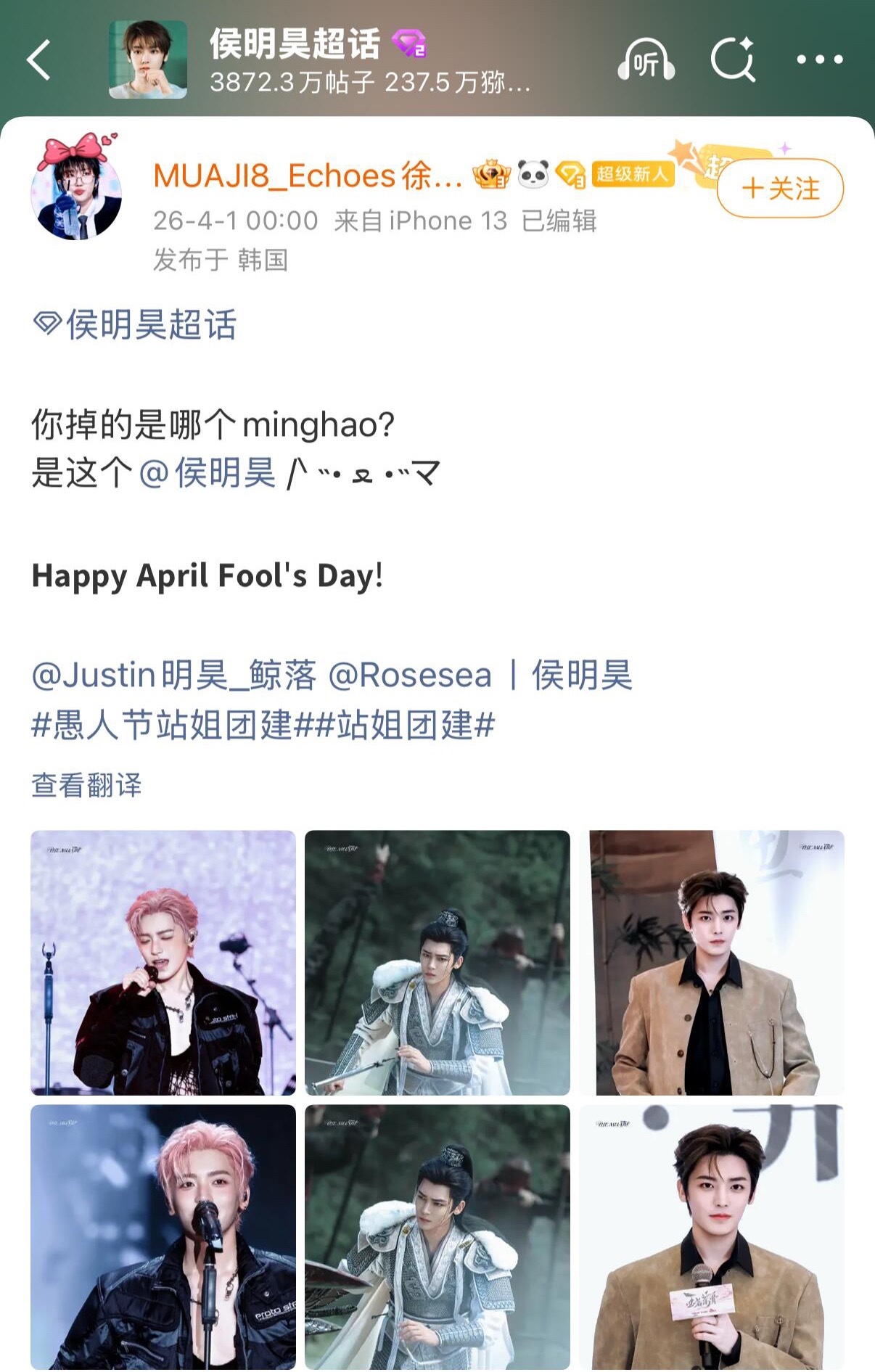 徐明浩、侯明昊、黄明昊三家愚人节站姐团建联动,内娱明hao宇宙就这样联动整活