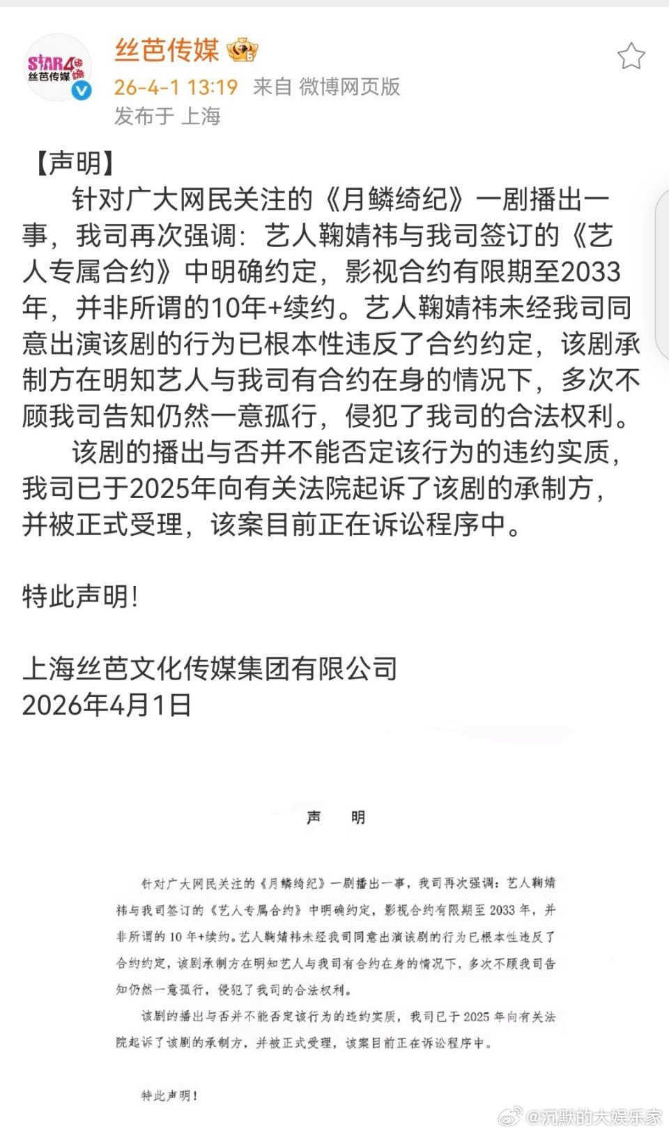 鞠婧祎偷.税.漏.税的事已经出调查结果了,人家确确实实在依.法.纳.税,新华社都发新闻了,第一次看到这种澄清正名的,清清白白!丝芭真资.本,那么压.榨离职了还要倒打一耙,只觉得这一行,好聚好散真是最难的事。丝芭起诉月鳞绮纪承制方