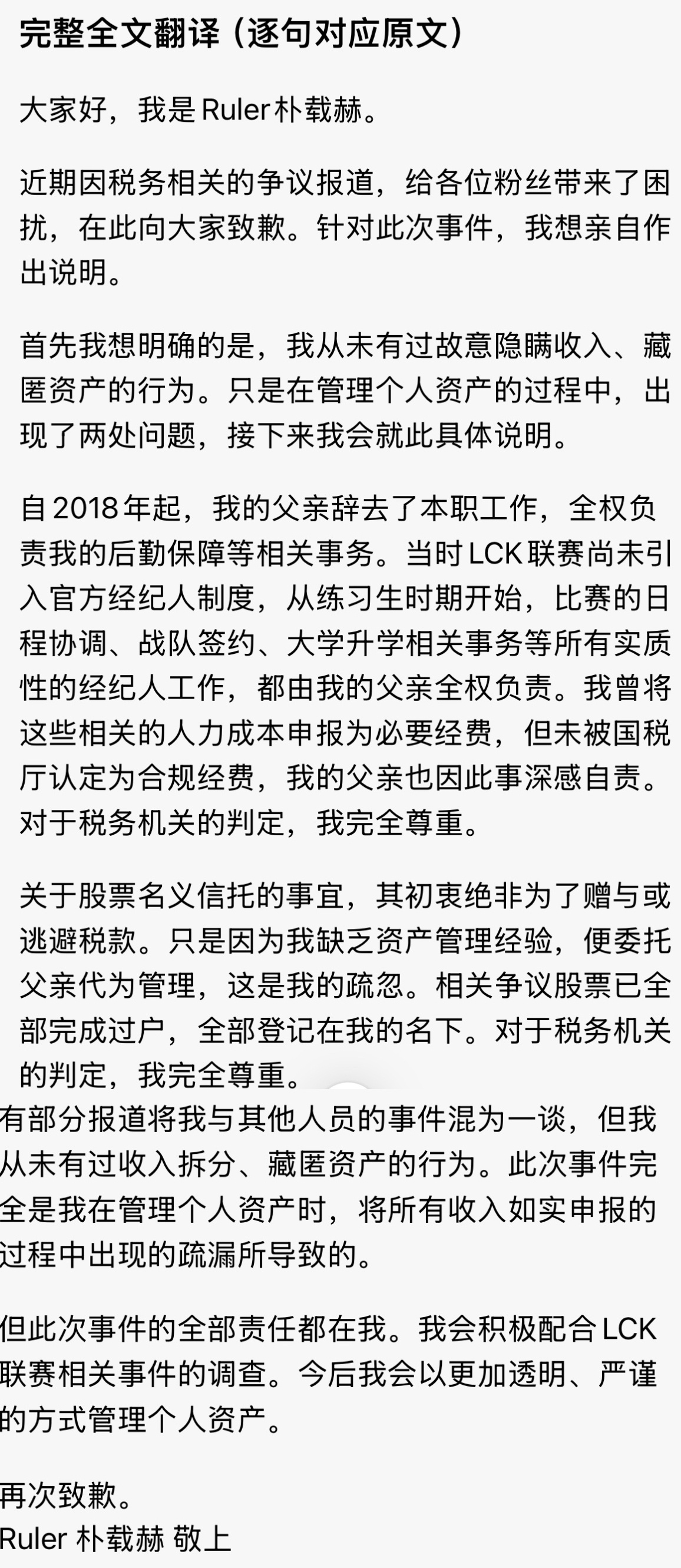 昨天还有韩媒说可能永久禁赛,结果今天Inven出来道歉说是AI摘要搞错了。现在LCK那边还没出结果,但Ruler自己先跳出来道歉,感觉这事不太妙啊。