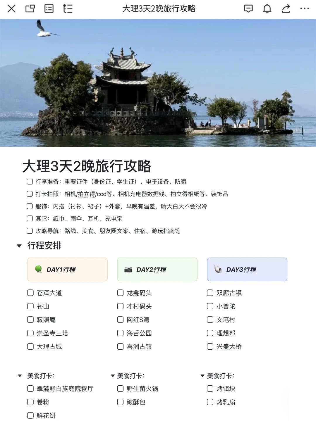 遇上好天气请不要犹豫!去大理!大理是一个不做攻略也能感到幸福的地方☺️~如果想要玩得更充实些,参考J人朋友的攻略可以省90%的精力去找资料✅