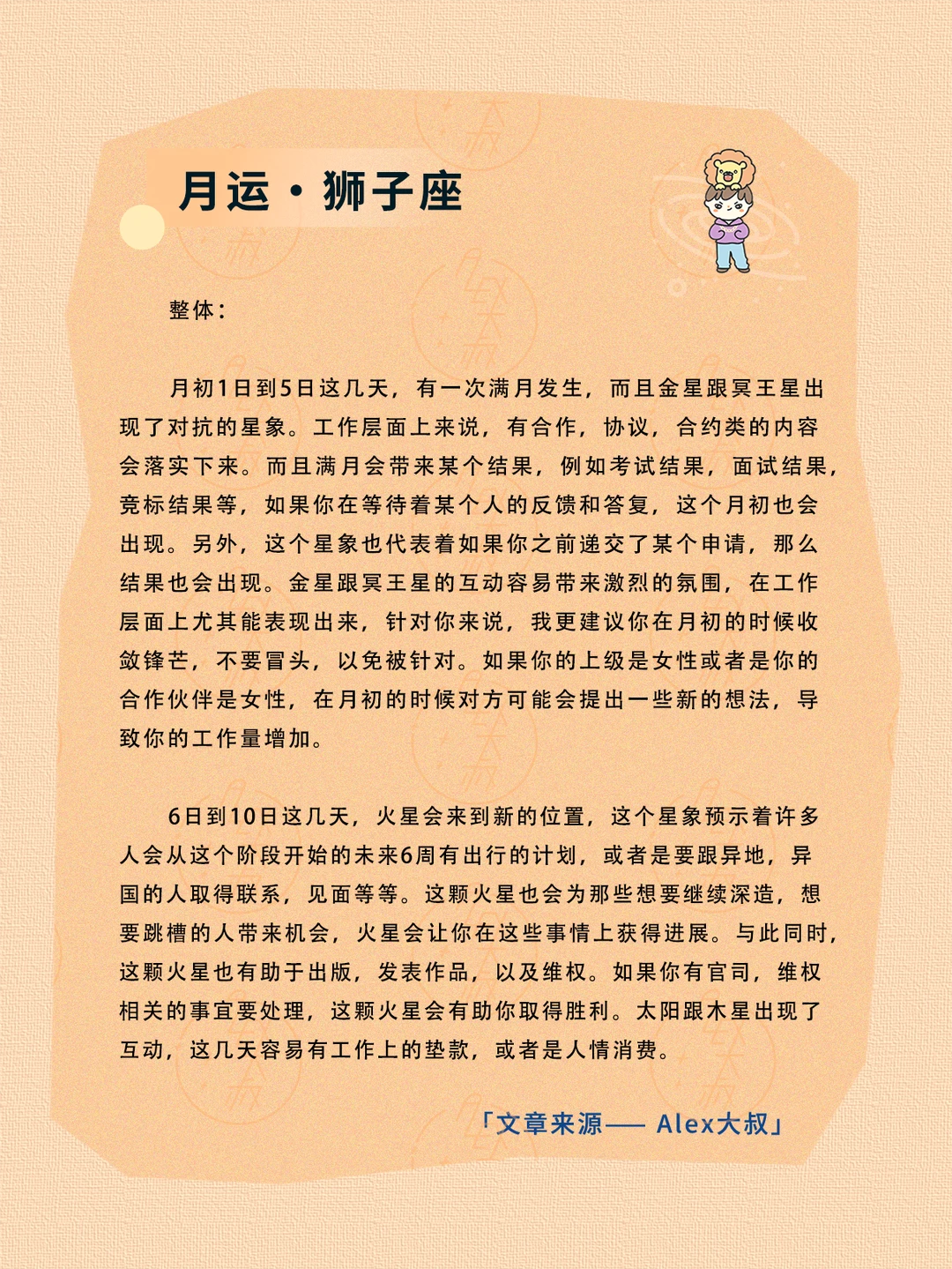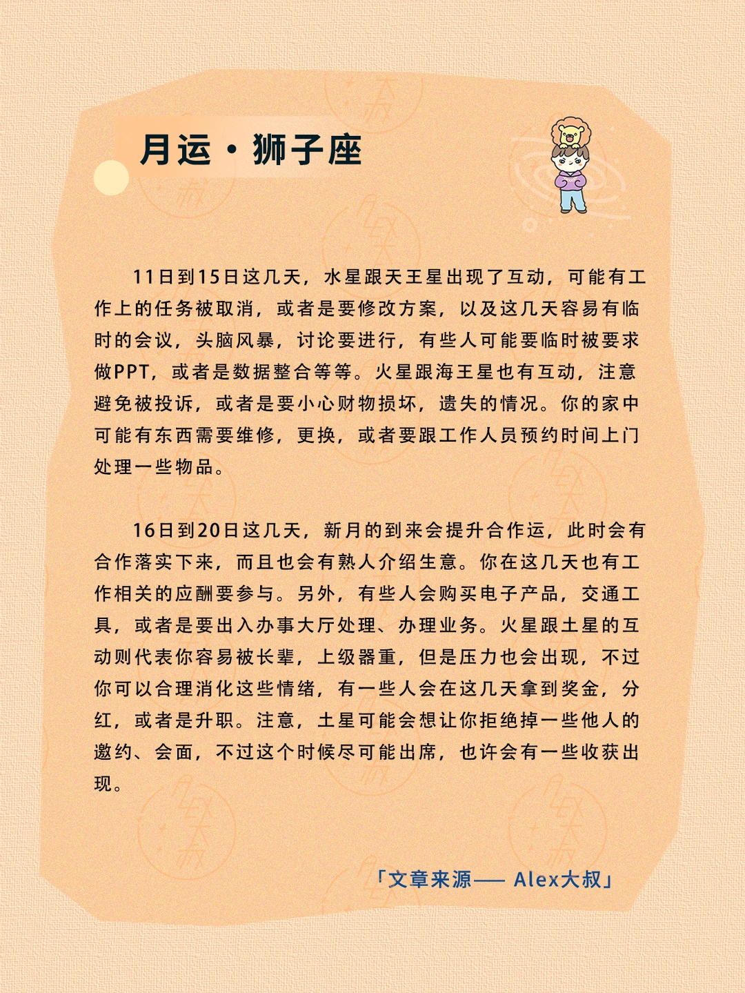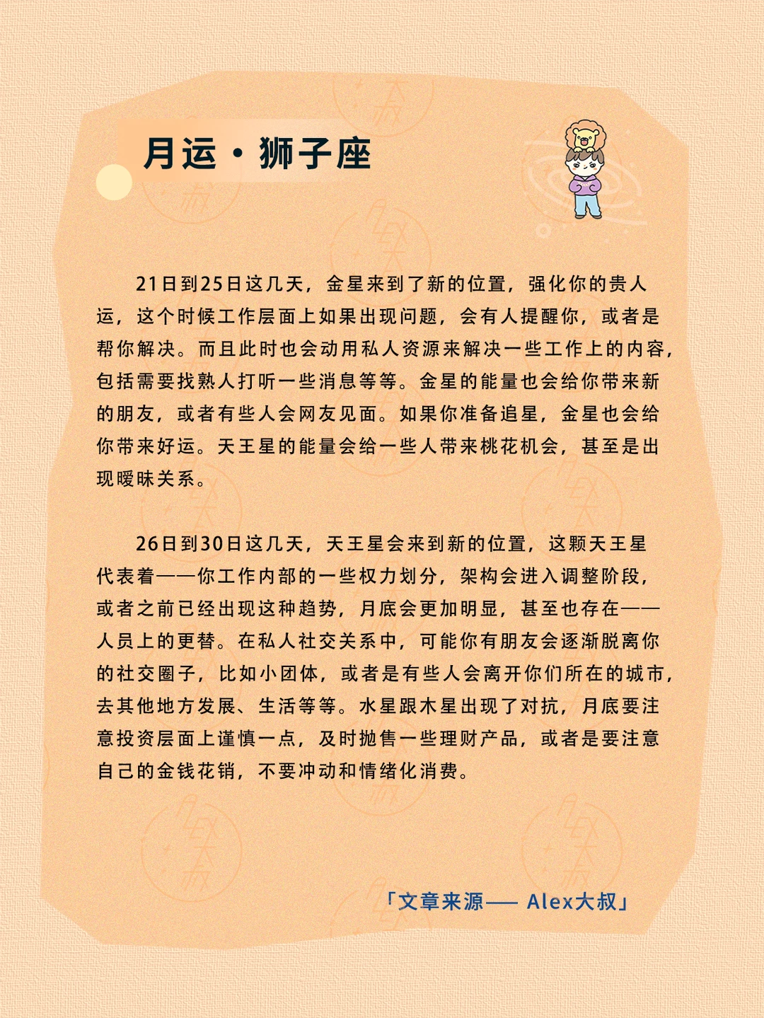 ALEX大叔 我的星座 星座运势 狮子座运势 处女座运势