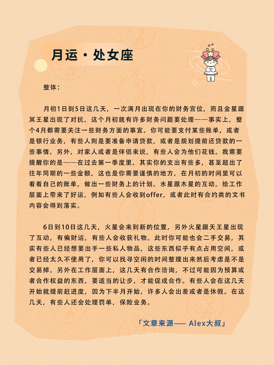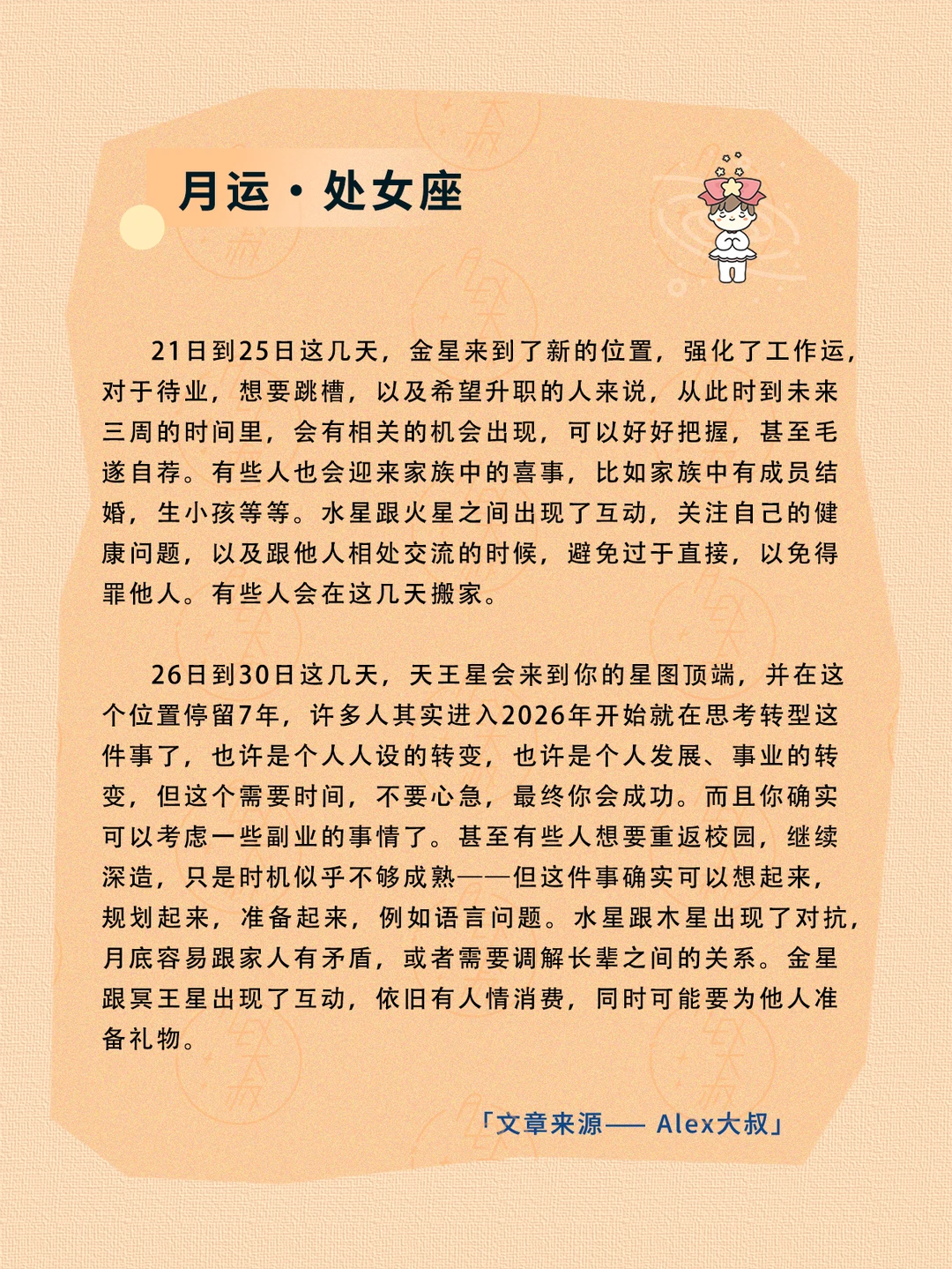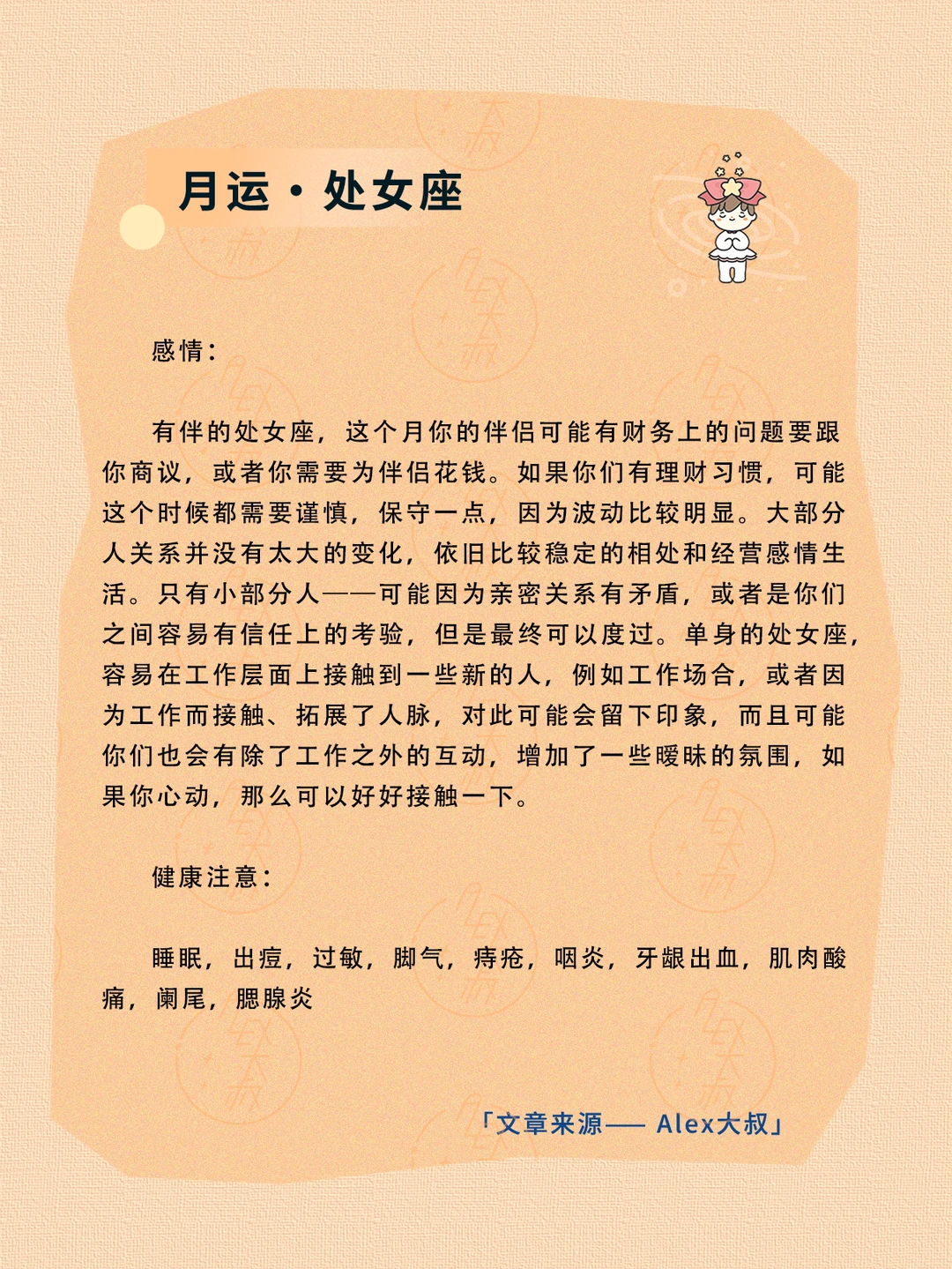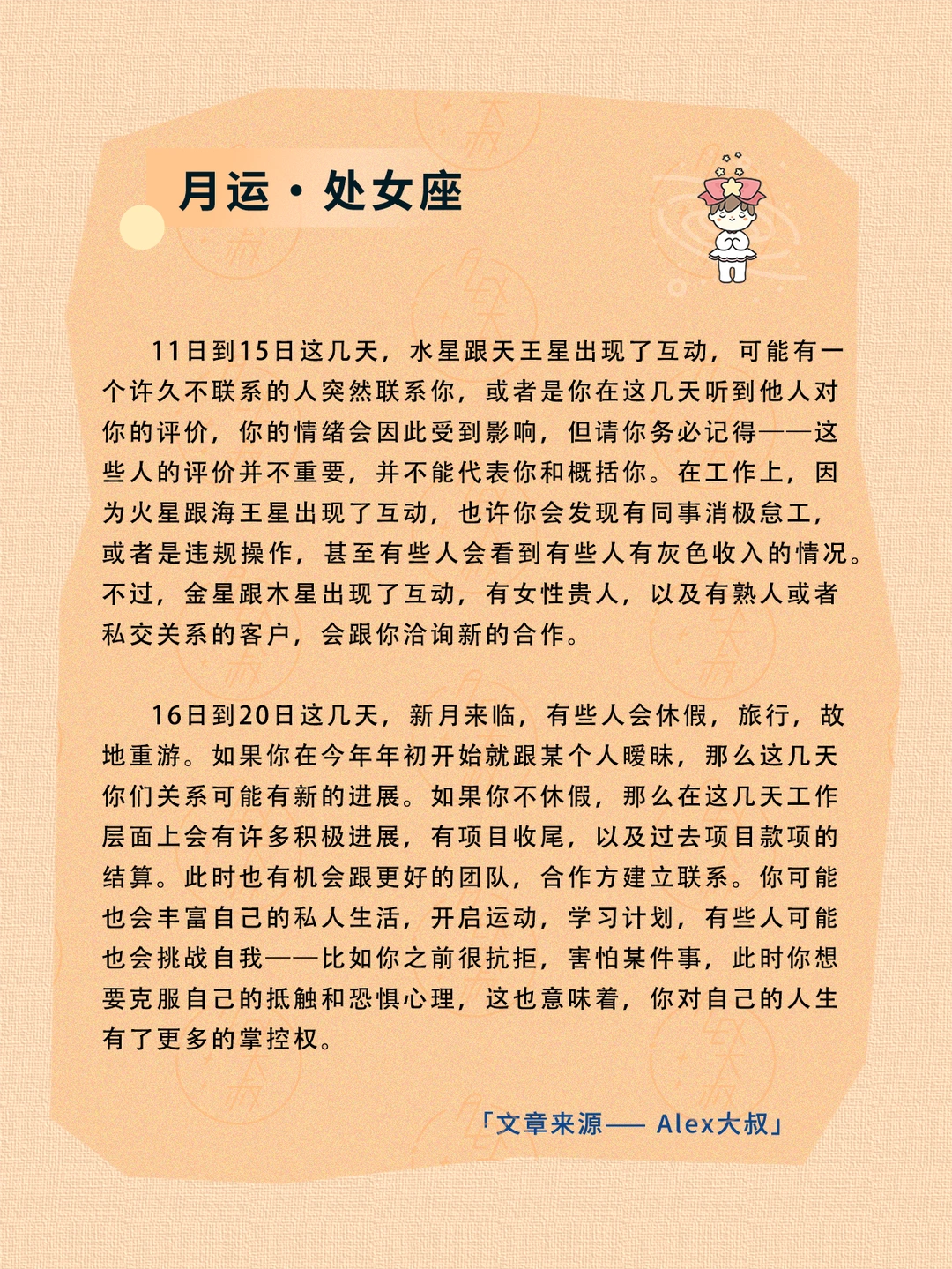 ALEX大叔 我的星座 星座运势 狮子座运势 处女座运势