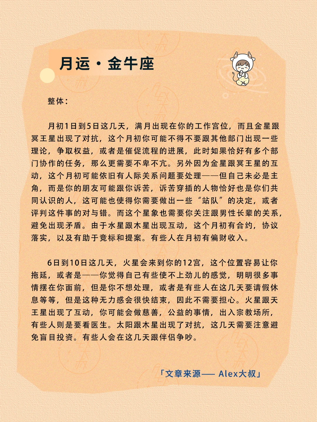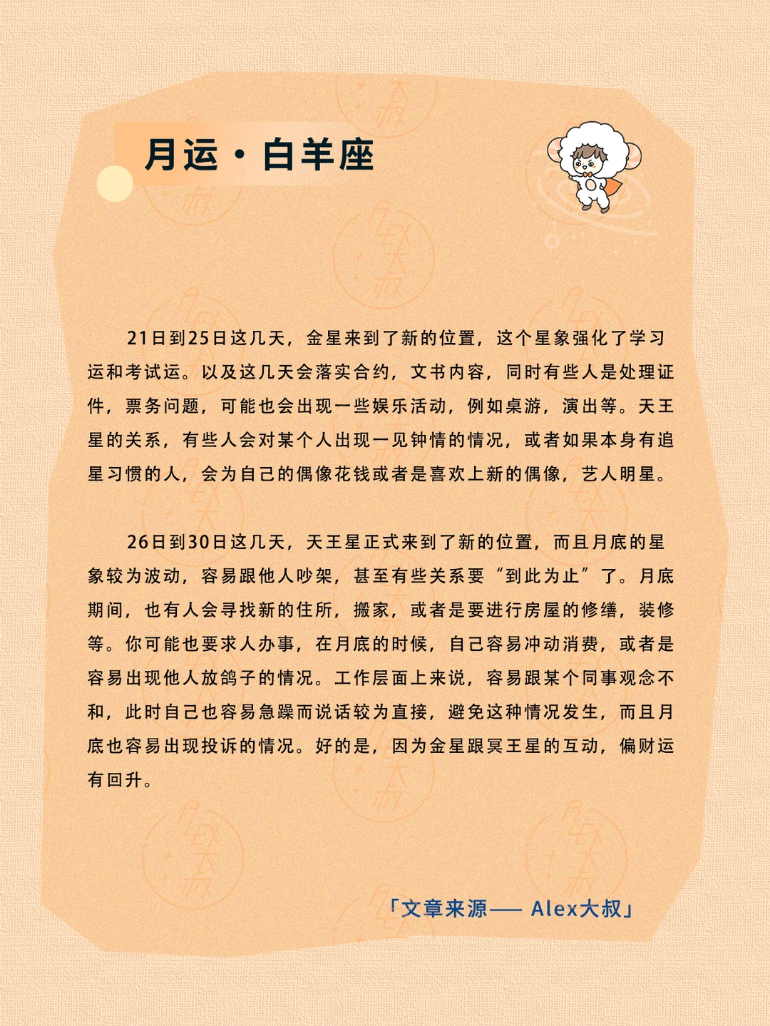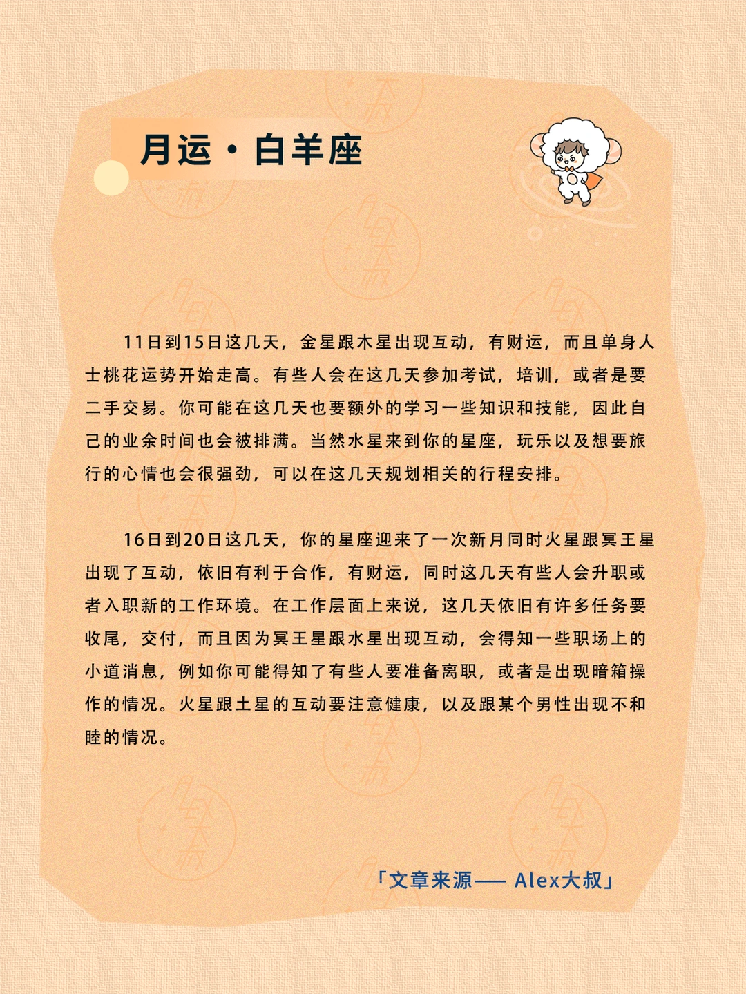 ALEX大叔 我的星座 星座运势 白羊座运势 金牛座运势