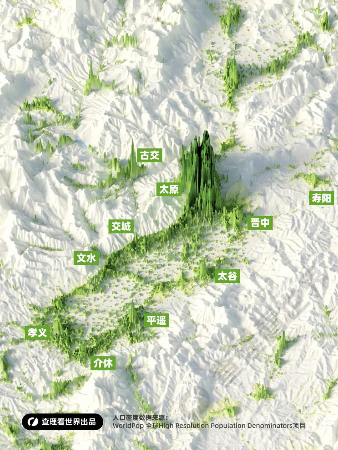 从地理视角来看,山西的人口分布非常不均衡,而是被地形“锁”在在了几块狭长的盆地之中。这种“地理内建”形成的极度不平衡,正是山西当前面临最深刻的治理挑战:全省约80%的资源与人口,正被迫在仅占面积约20%的谷地中进行“内卷式”竞争。