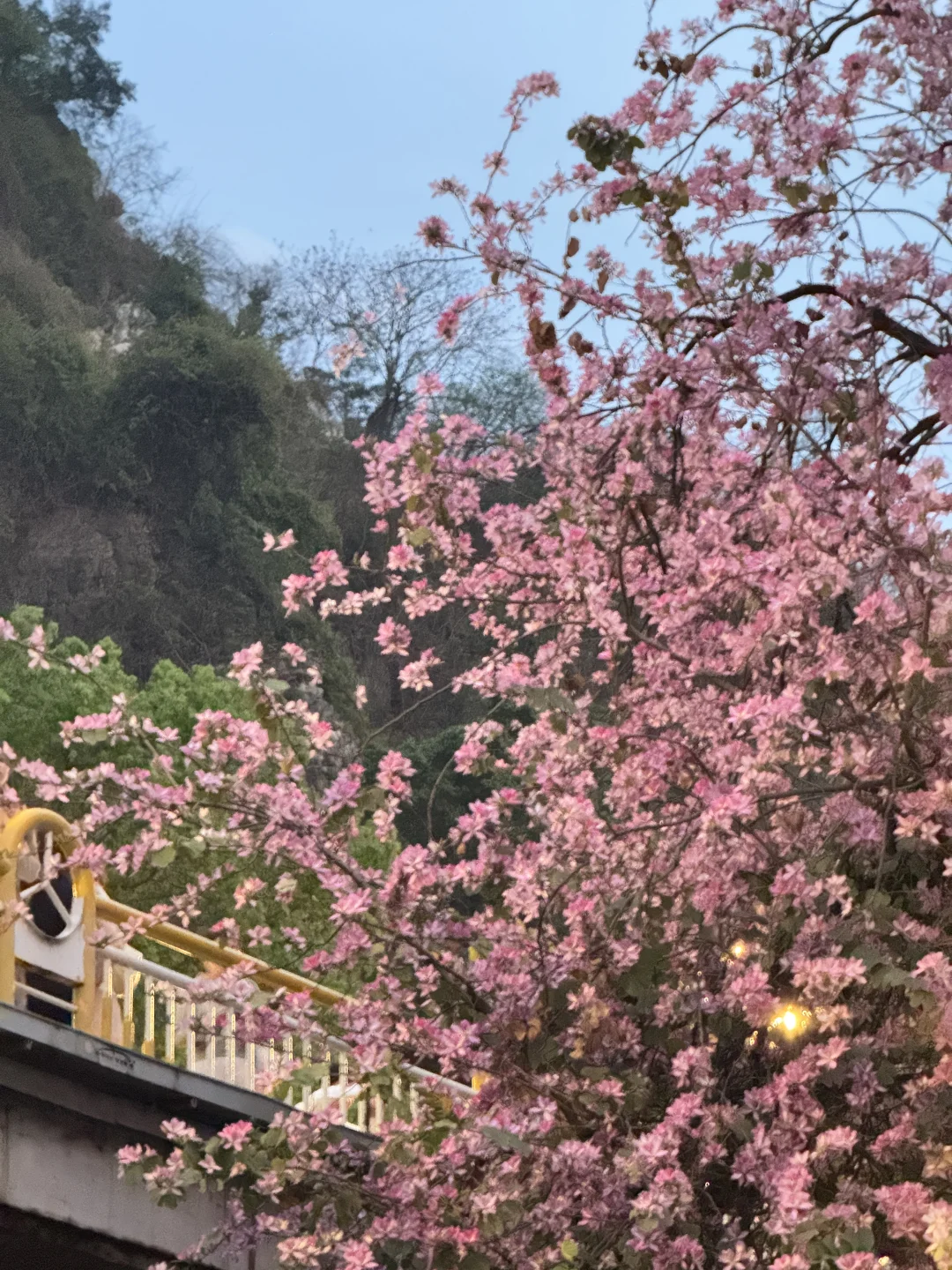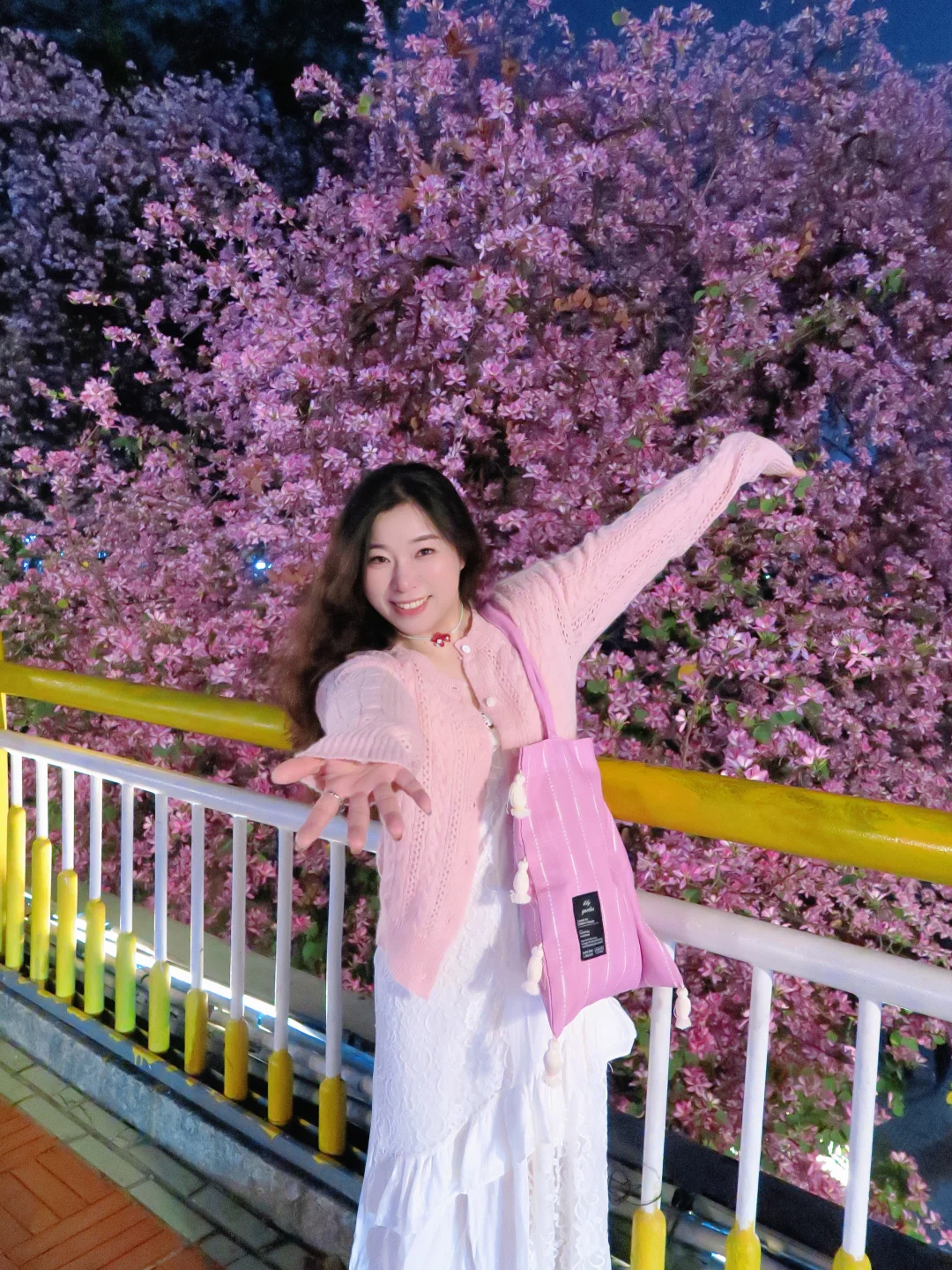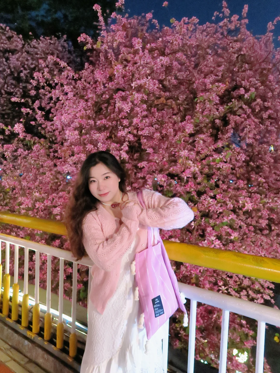 紫荆花拍了很多,没想到晚上拍还是第一次 发现桥上其实挺亮的,蛮多灯光都可以补面光 如果有稍微轻柔的补光灯也能带着,本来怕太黑想打开闪光灯拍,没想到不开闪光灯的效果更佳网感 - 醒图滤镜:用了一个鲜花增强 拍照小心机:购买了一朵假的紫荆花发夹 [捂嘴笑R][捂嘴笑R]