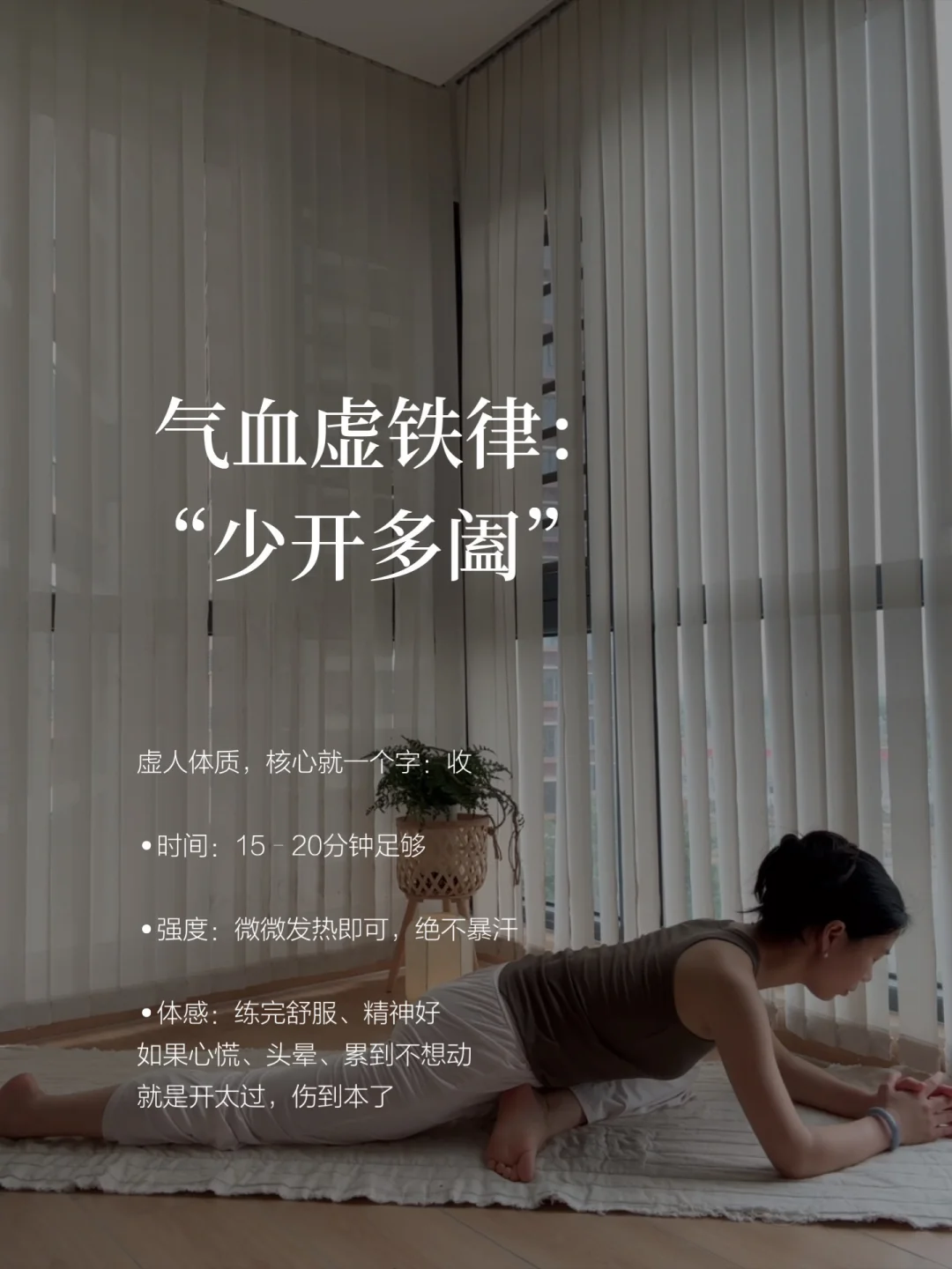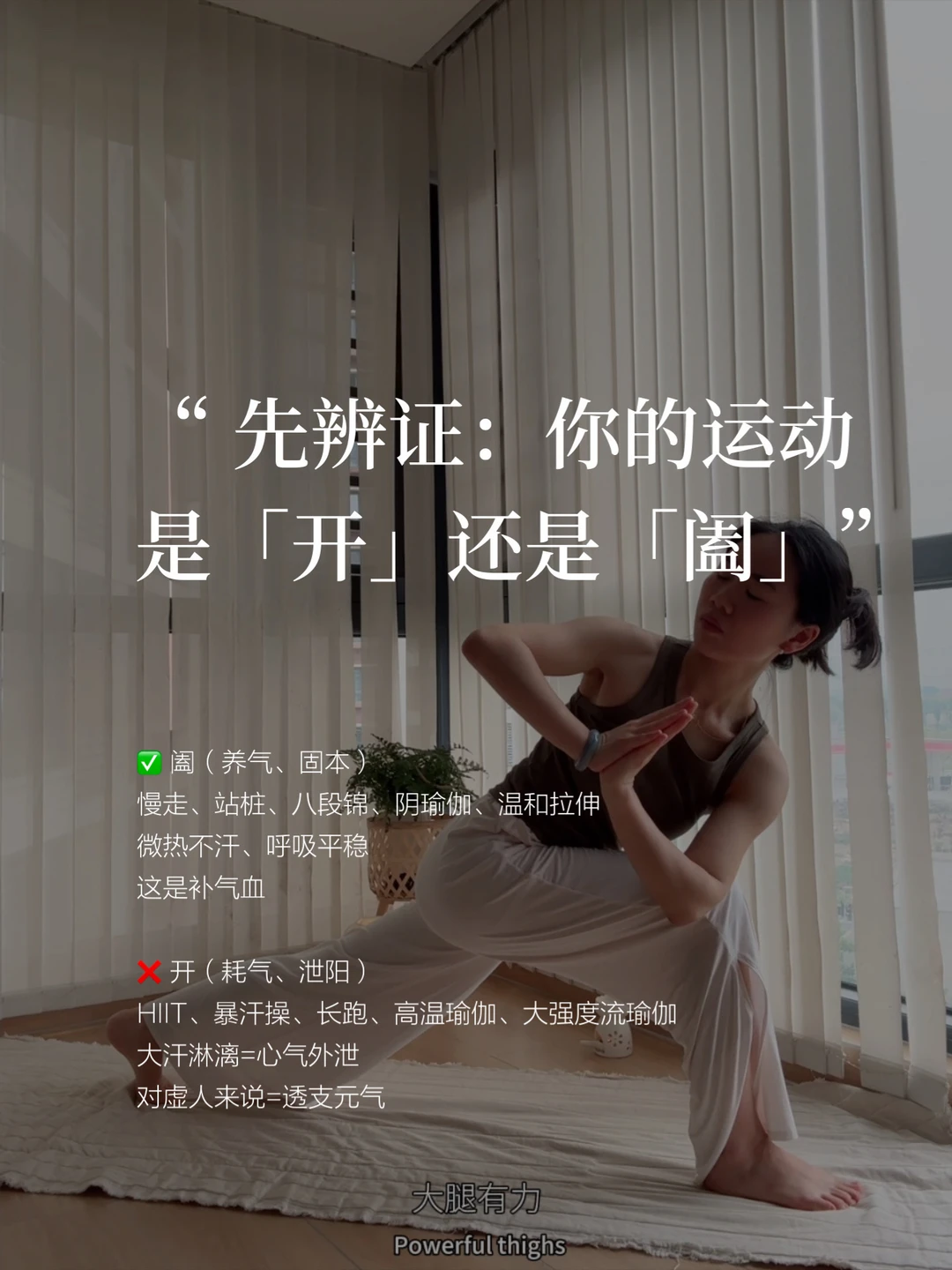 明明体虚、乏力、脸色差、一动就喘 还在跟风跳操、跑步、流瑜伽 以为多出点汗就是排毒 结果越练越虚、越练越累、姨妈都不稳 今天用中医开阖辨证 把气血虚的运动逻辑讲透 看完你就懂: 不是你不努力,是你动反了 真正的养生,从来都不是苛责自己、透支身体的苦行,而是顺应体质、呵护气血的温柔善待。 别再用错误的运动消耗自己,慢一点,柔一点,动对了,每一分坚持都是在滋养身心; 养对了,气色和元气,都会慢慢回到你身上。